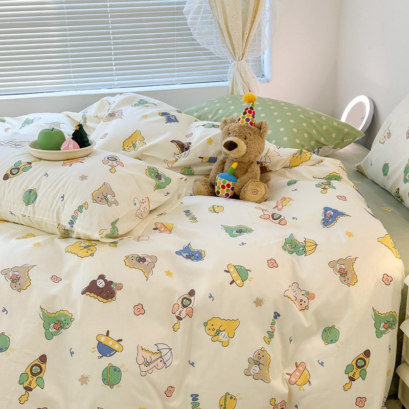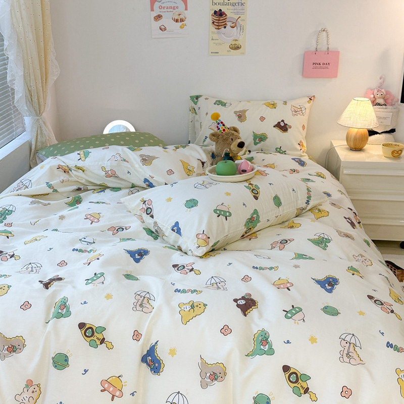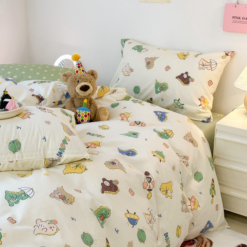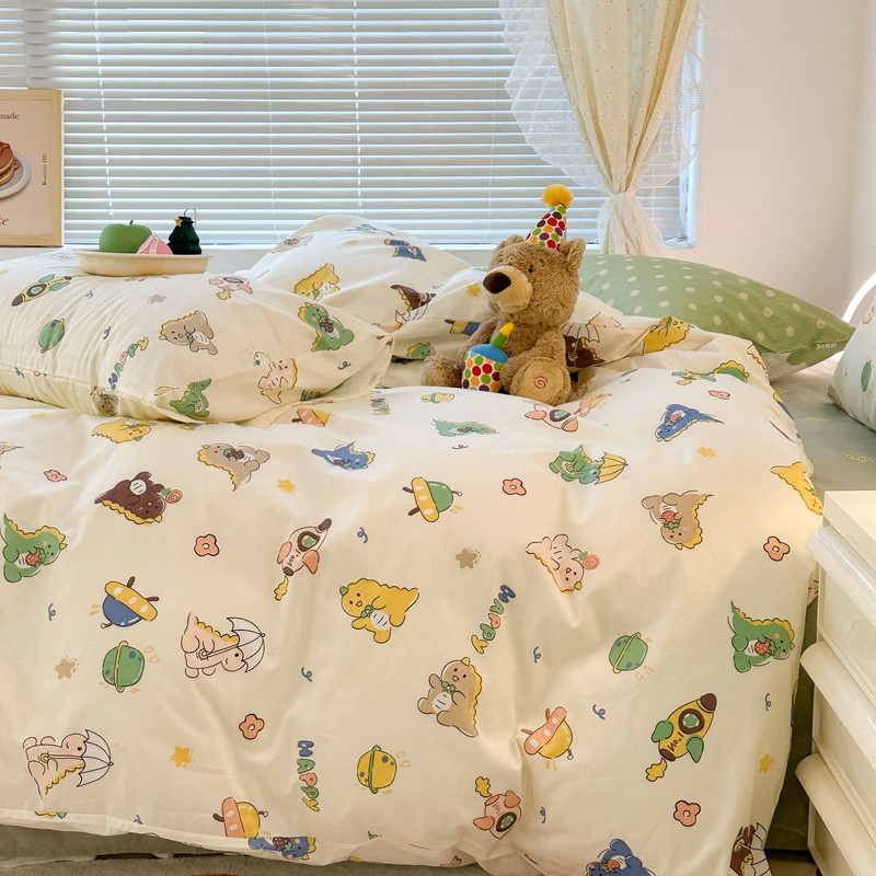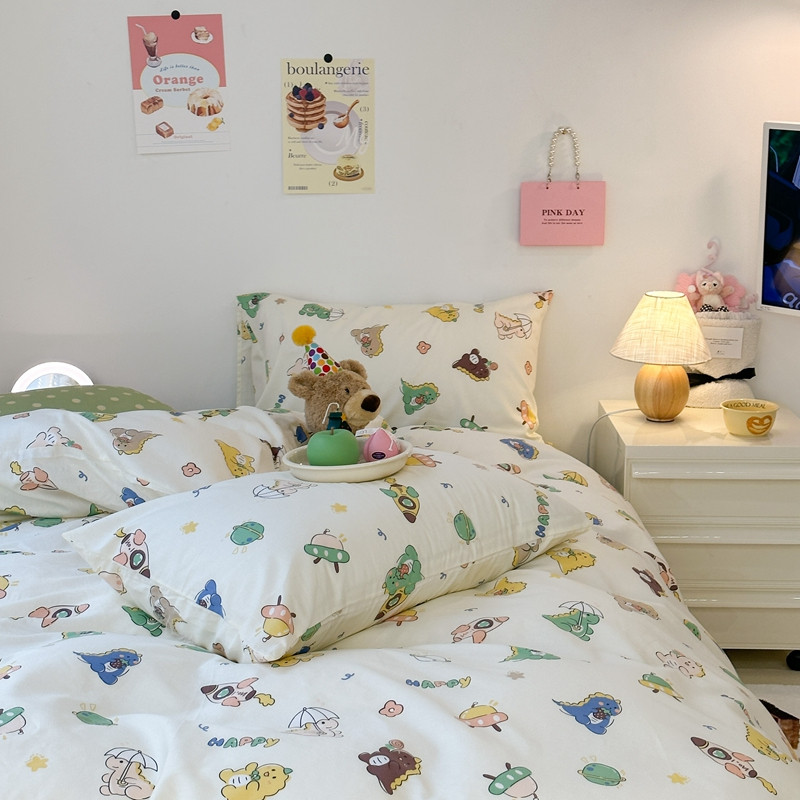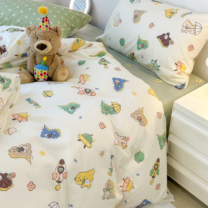 (总)昔可 2023新款学生季卡通普通款四件套,彩色气球熊,彩条恐龙,憨憨熊,花蜜小兔,蘑菇兔,圈圈草莓,蔬菜小兔,郁金香小萌狗