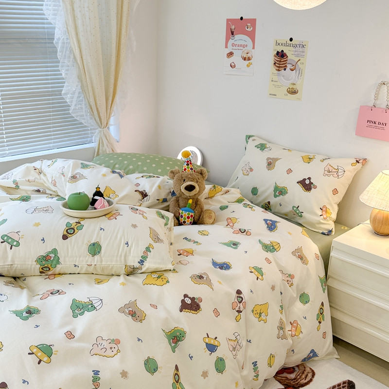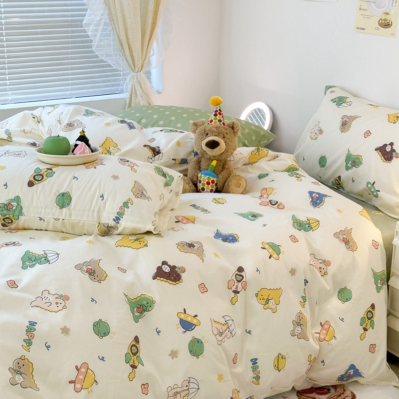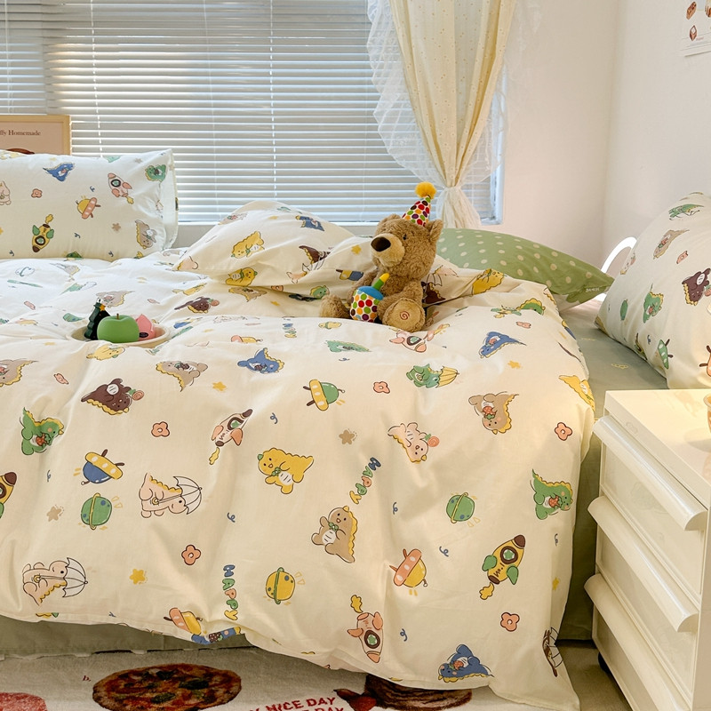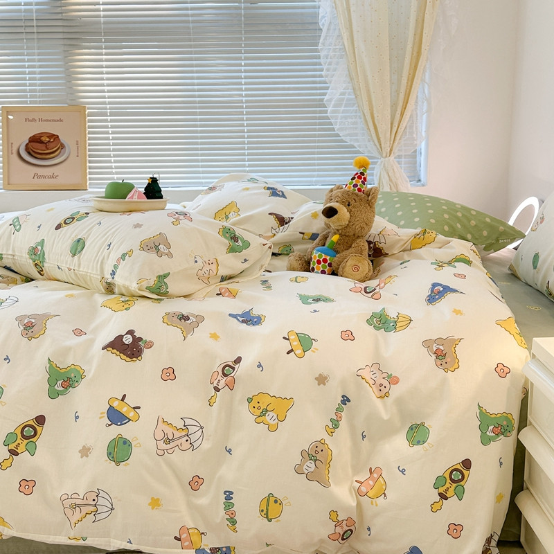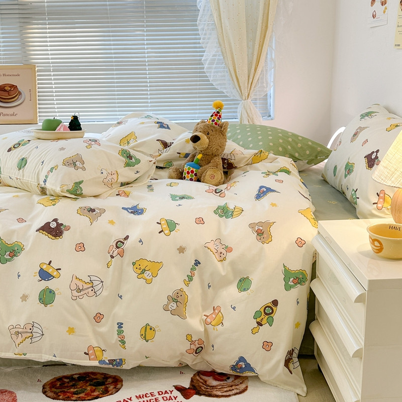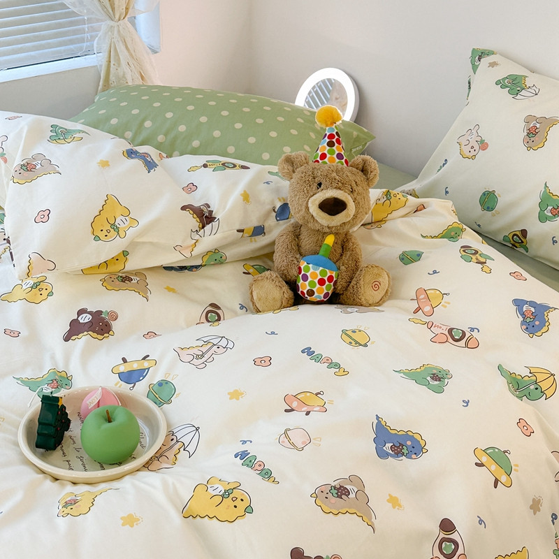 (总)昔可 2023新款学生季卡通普通款四件套,彩色气球熊,彩条恐龙,憨憨熊,花蜜小兔,蘑菇兔,圈圈草莓,蔬菜小兔,郁金香小萌狗