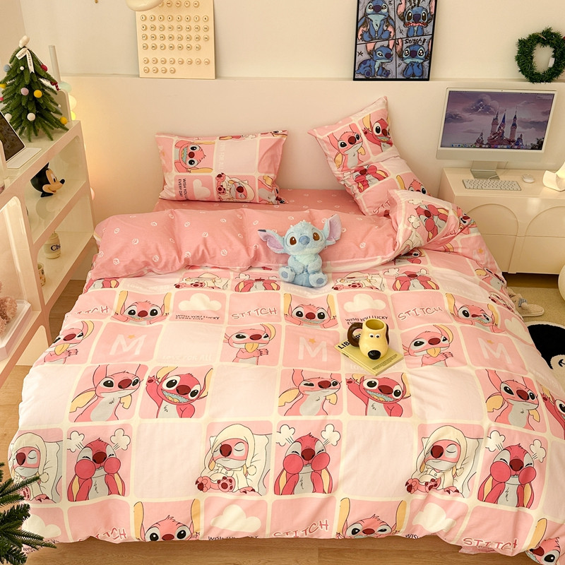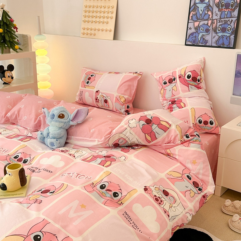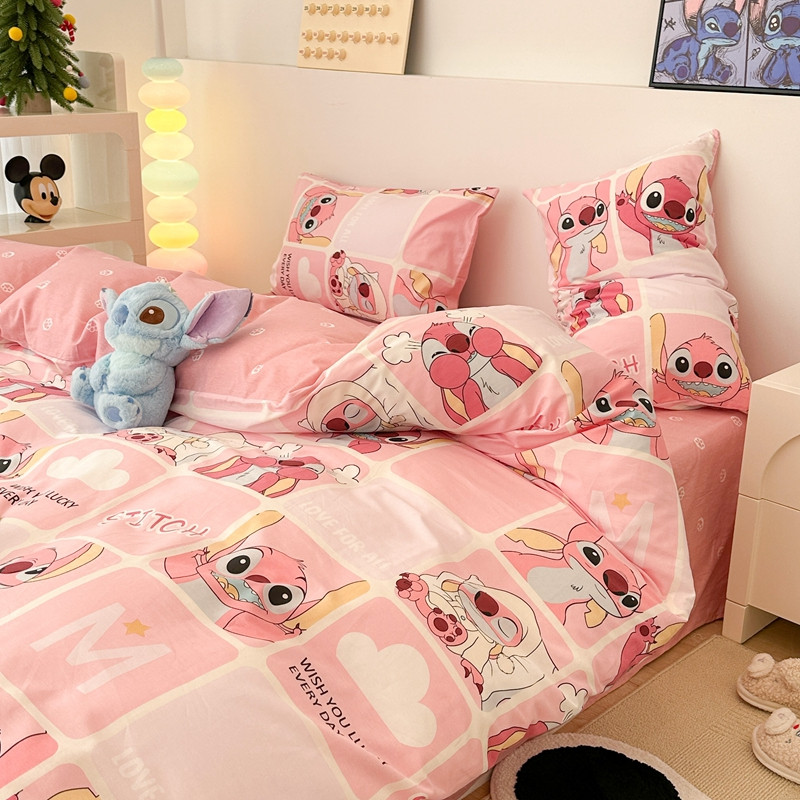 昔可家纺 2023新款迪士尼系列全棉四件套 粉色史迪仔