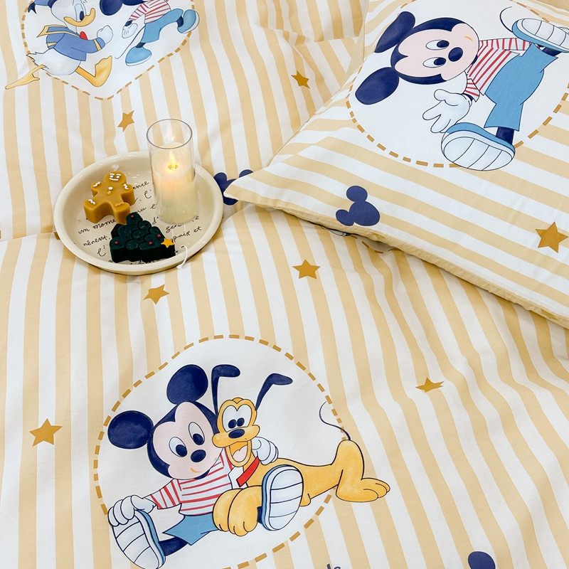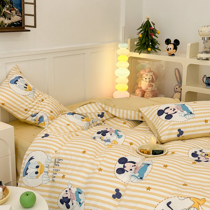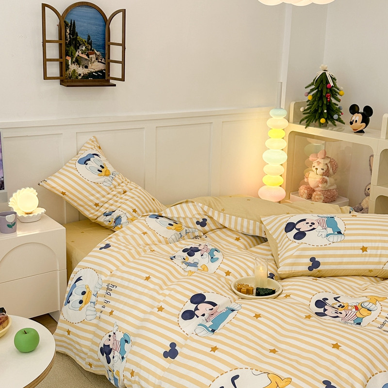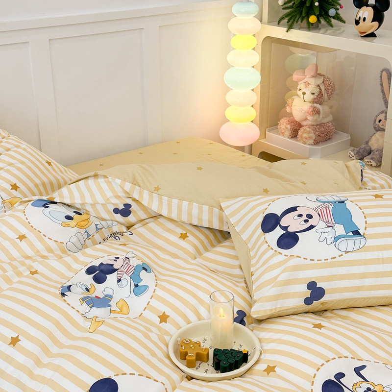 昔可家纺 2023新款迪士尼系列全棉四件套 星星竖条米奇