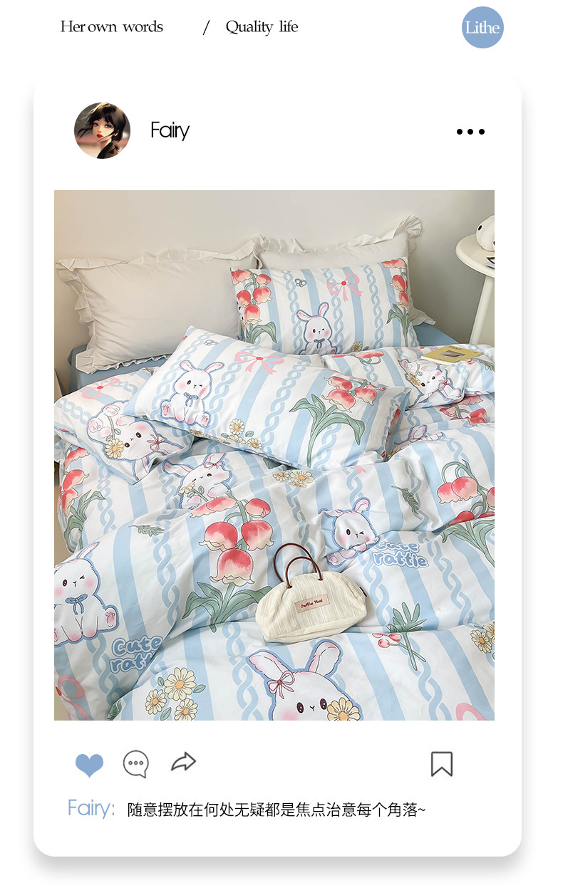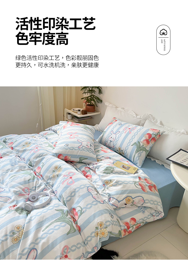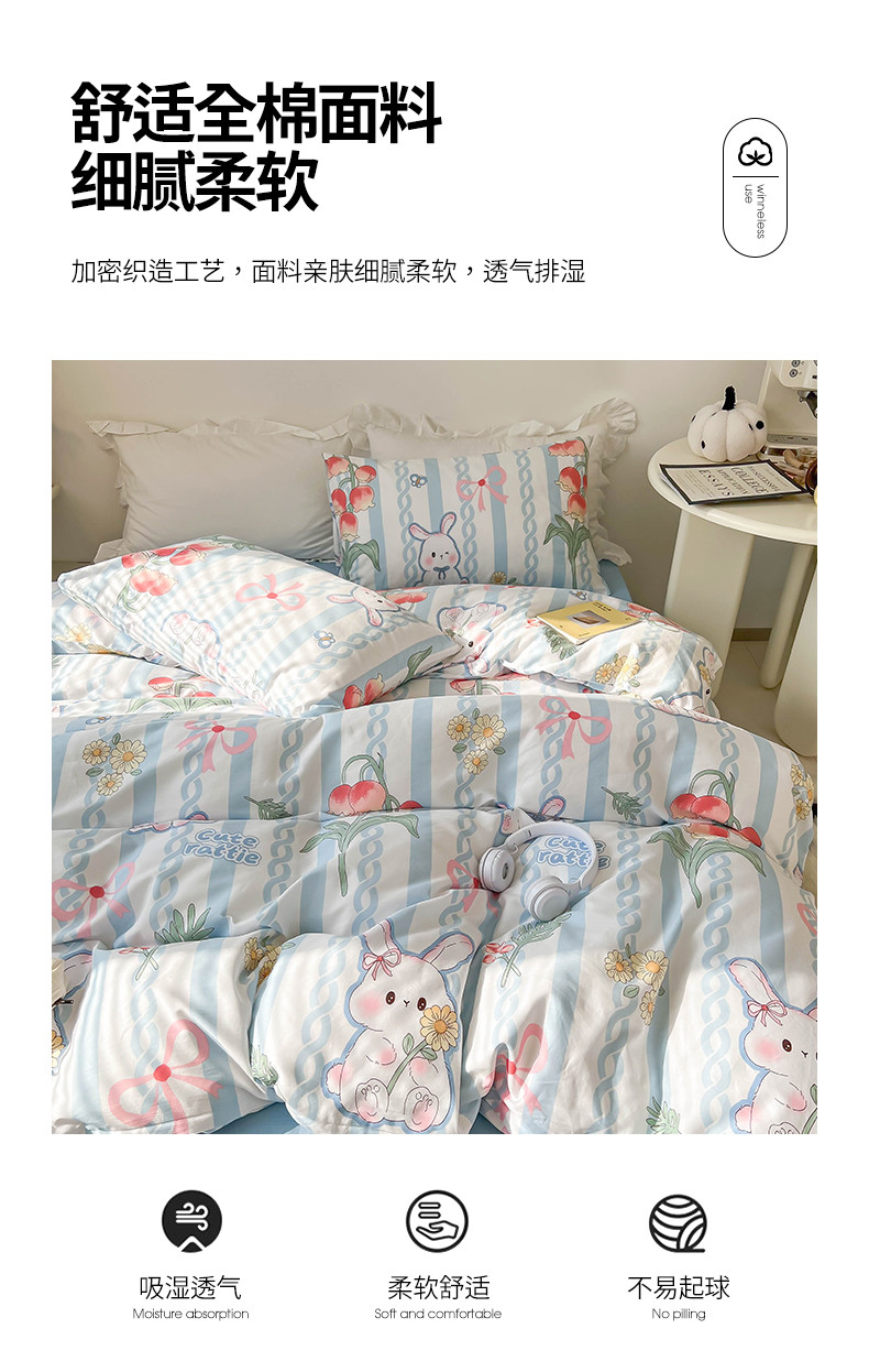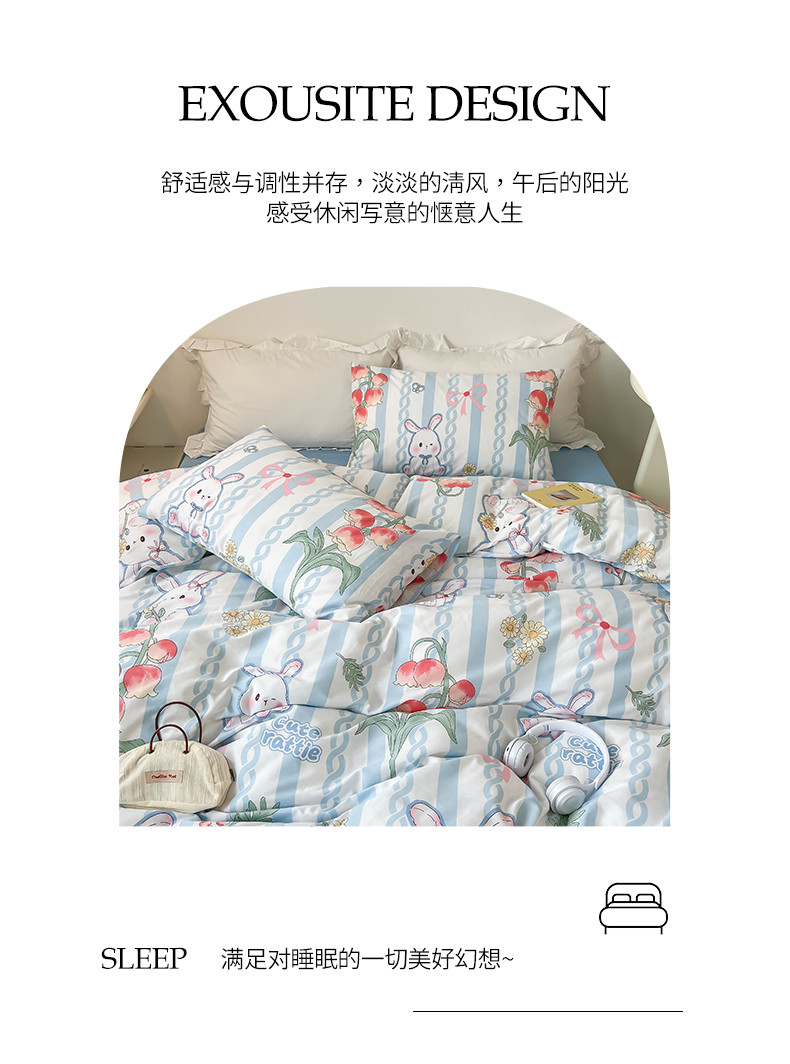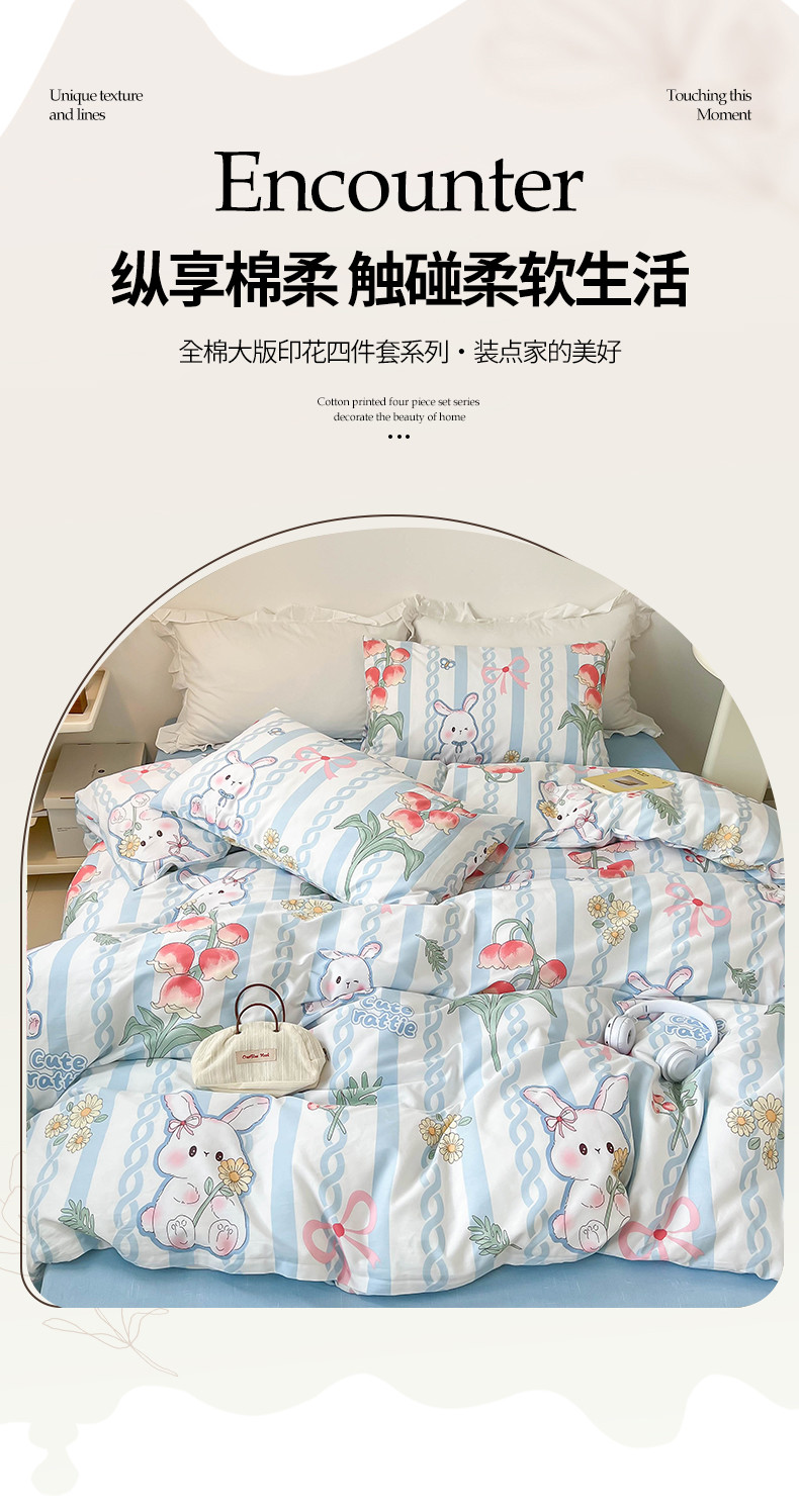 红馆 2022新款12868全棉系列印花四件套 兔子