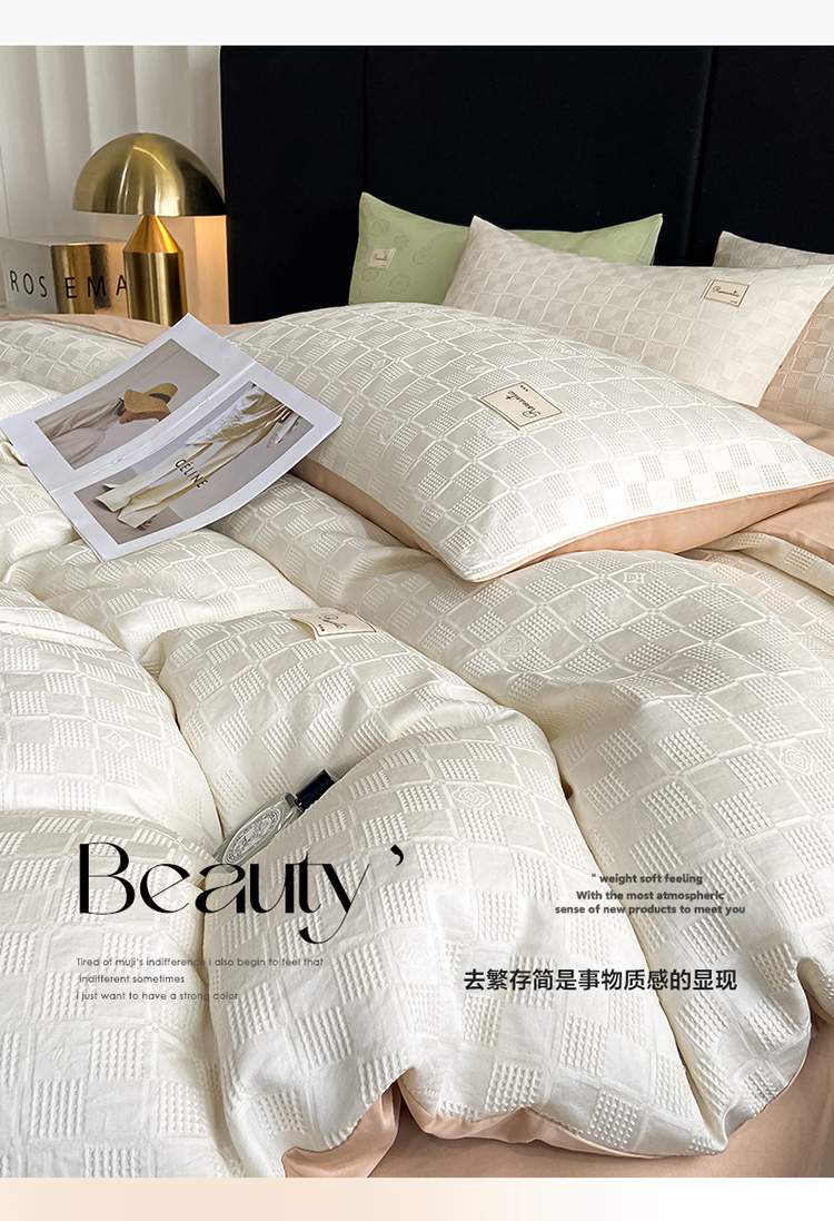 金麦 2023新款冰丝华夫格四件套系列 华夫格本白