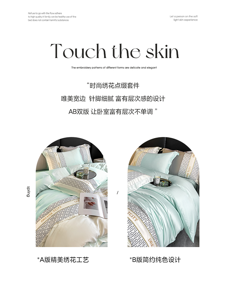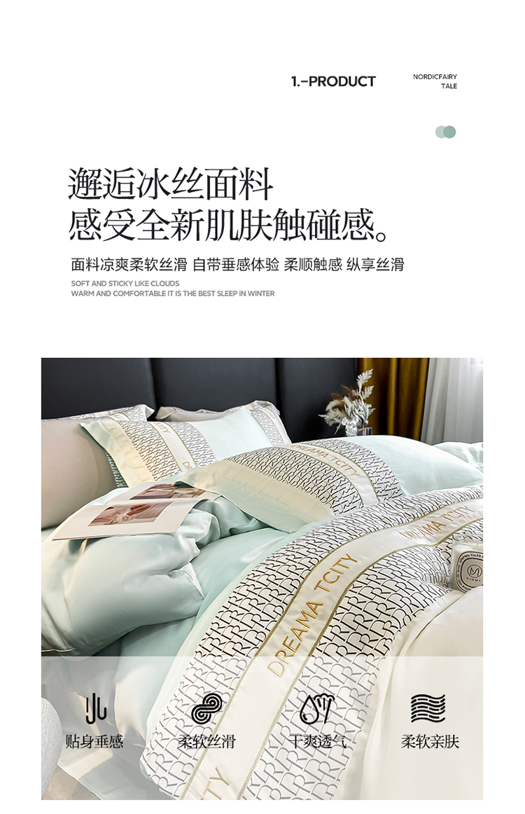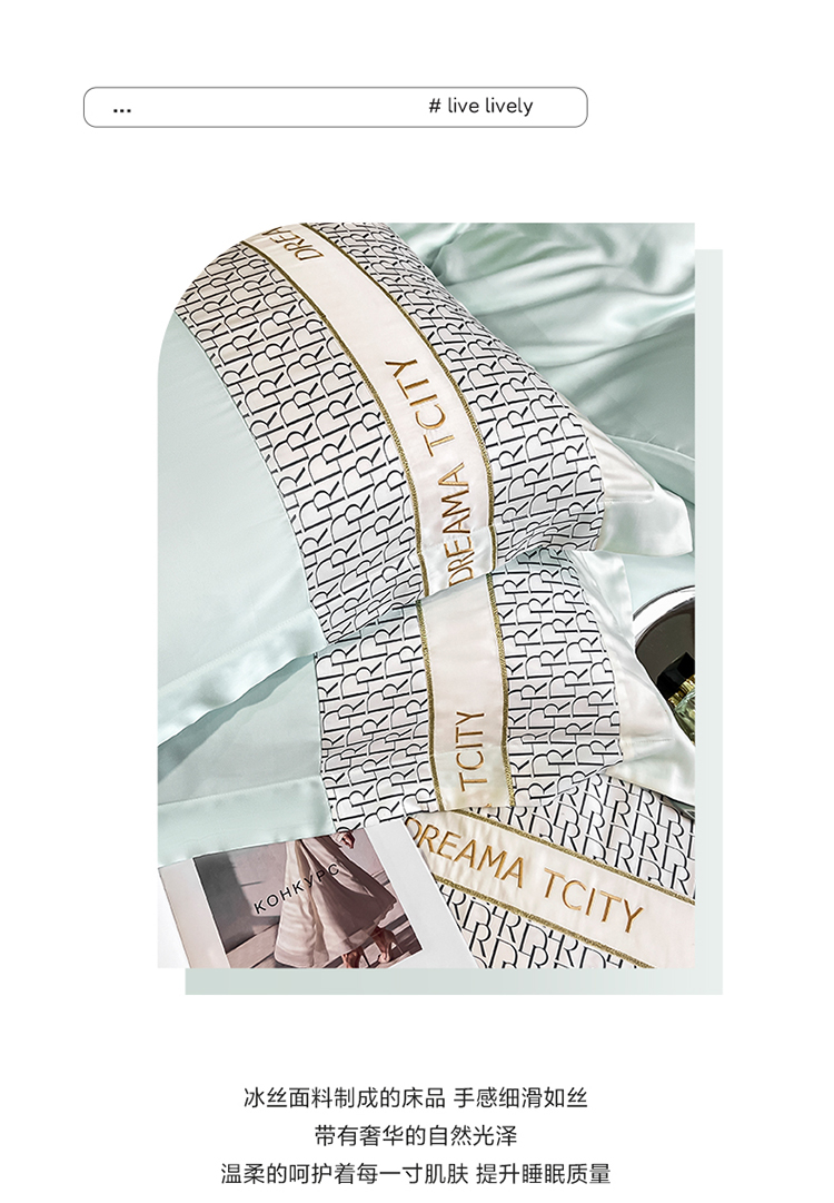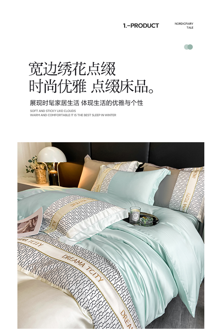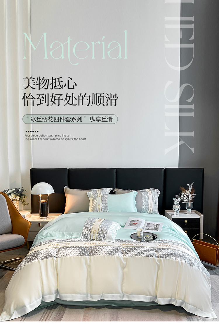 (总)金麦家纺 2025新款冰丝绣花四件套-心愿系列,心愿粉色,心愿燕麦奶,心愿天空蓝,心愿淡雅绿,心愿浅灰