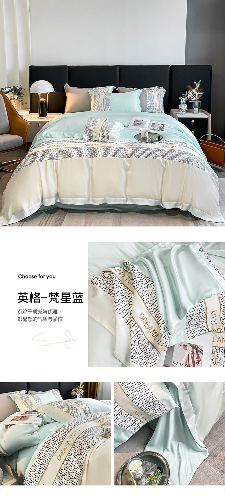 商品名称:金麦家纺 2023新款冰丝英格四件套系列 英格-梵星蓝