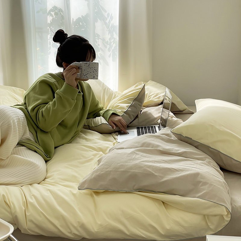 当前位置: 91家纺网 > 商品网购 > 床品套件 > 四件套 > 全棉普通四件套 > (总)时年 2023新款40支全棉水洗棉嵌绳款四件套--拍法一