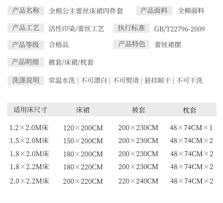 180*200cm四件套 | ¥258.00 |