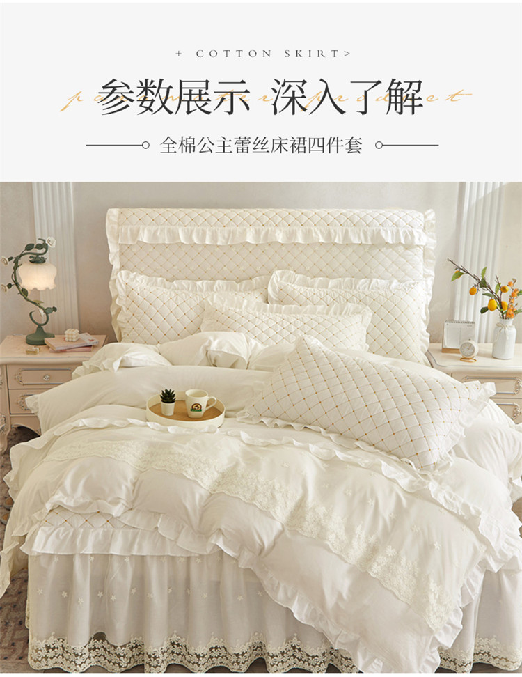 当前位置: 91家纺网 > 商品网购 > 床品套件 > 四件套 > 全棉普通四件套 > 十个点 2024新款全棉公主夹棉床裙四件套 白色