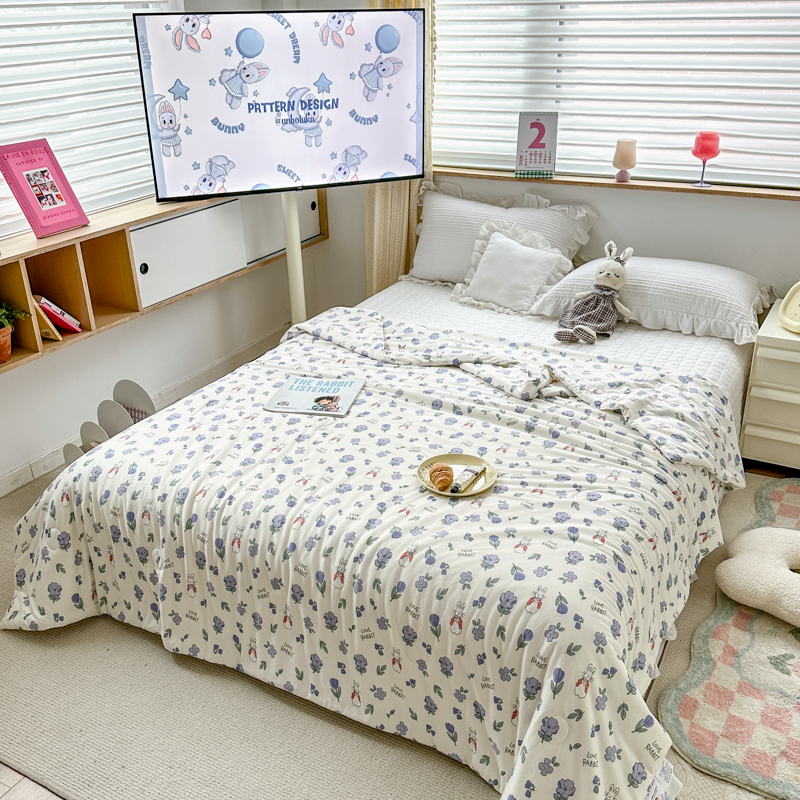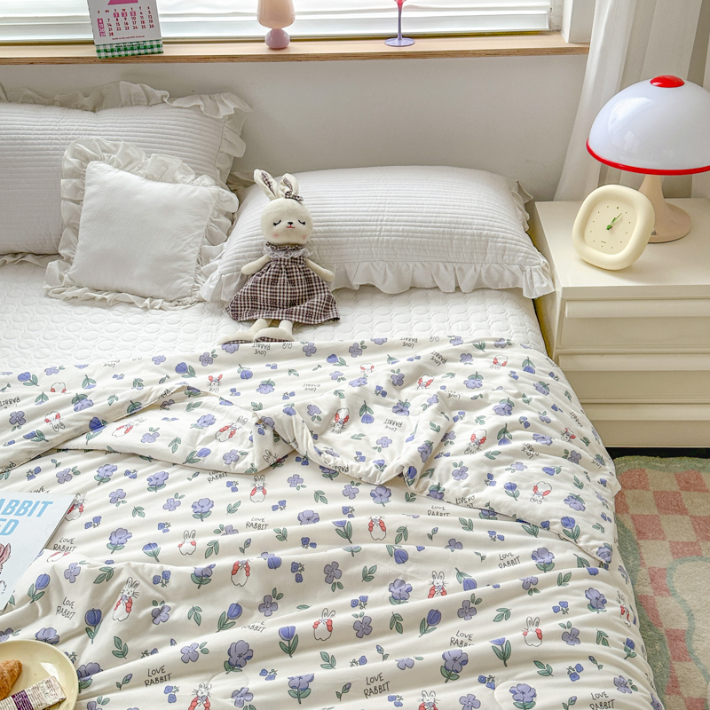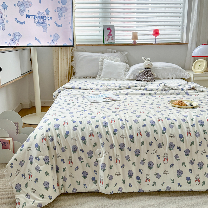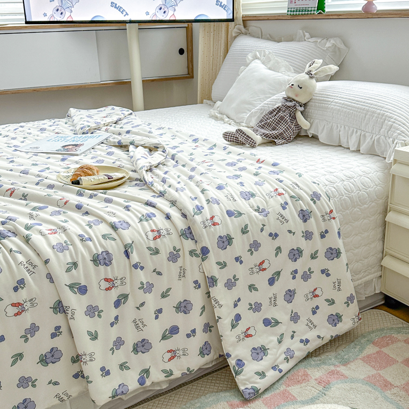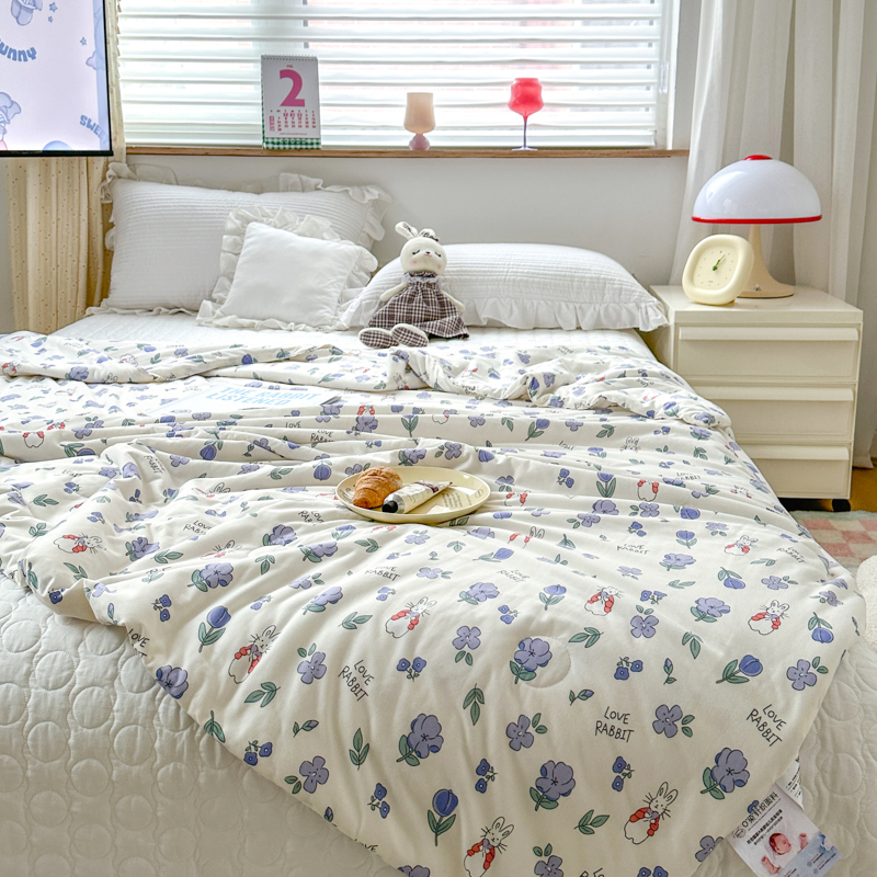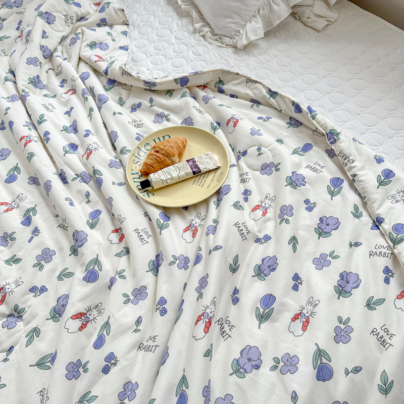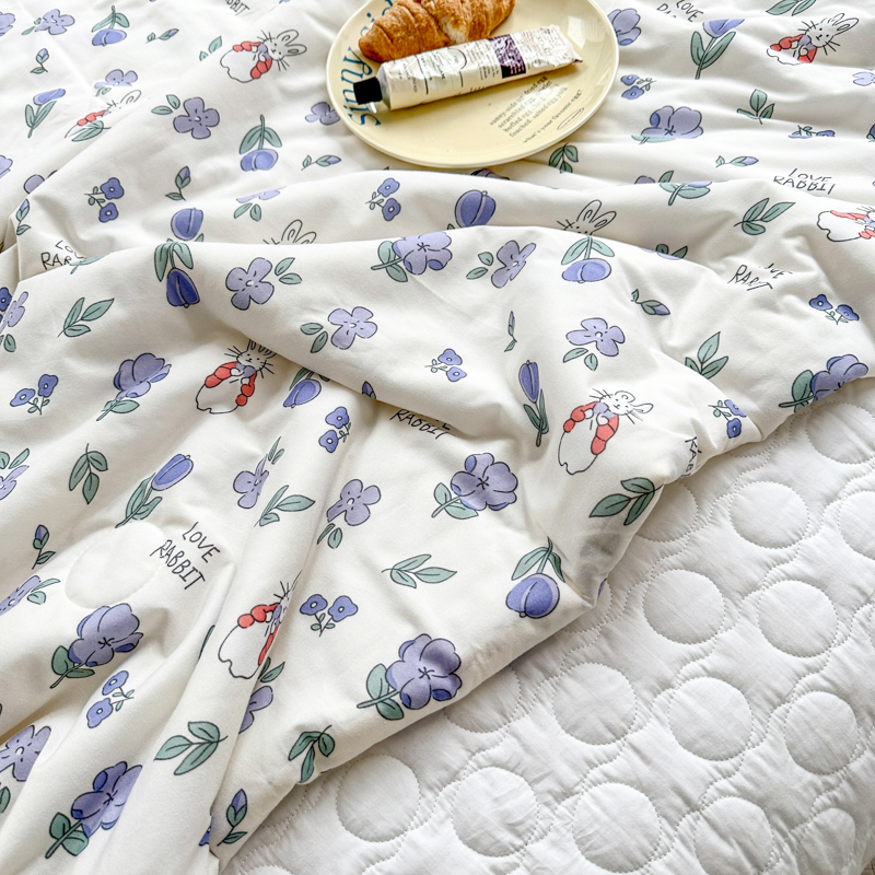 木堇家居 2023新款针织夏被A类大豆针织棉夏被 紫色花园兔