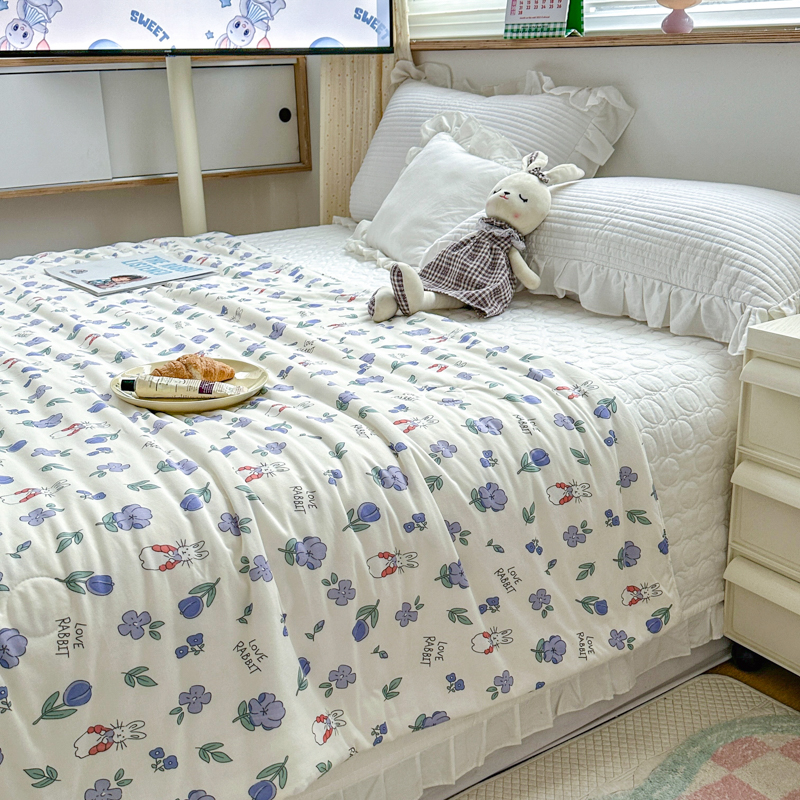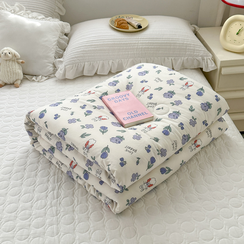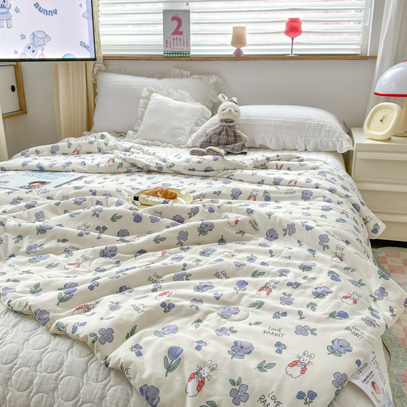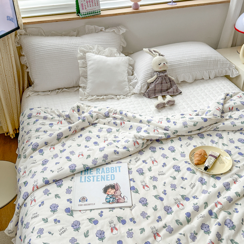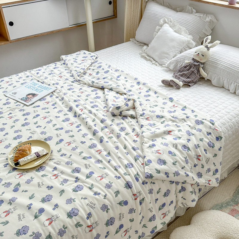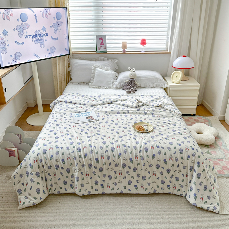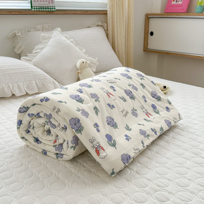 木堇家居 2023新款针织夏被A类大豆针织棉夏被 紫色花园兔