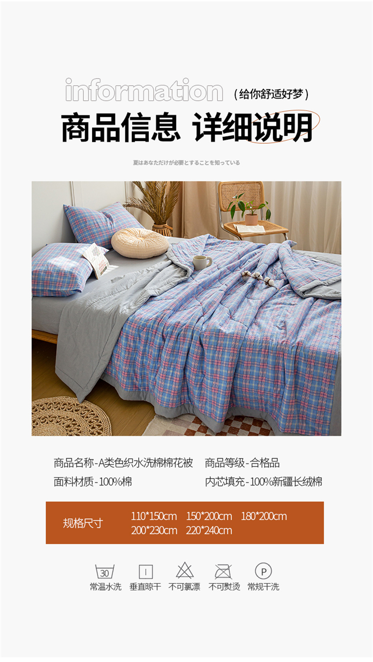 • 91家纺网 家纺一手货源 找家纺 鸣升 新款全棉色织水洗棉棉花夏被(图片2无模特) 芳华兰
