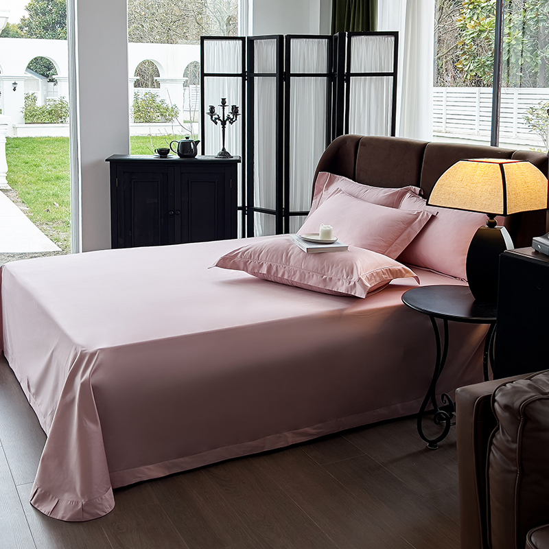 商品名称:嘉悦50*50S双股长绒棉简约纯色埋绳单品床单邂逅-实拍 邂逅-奶油粉