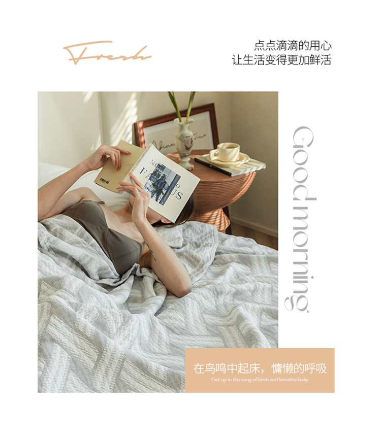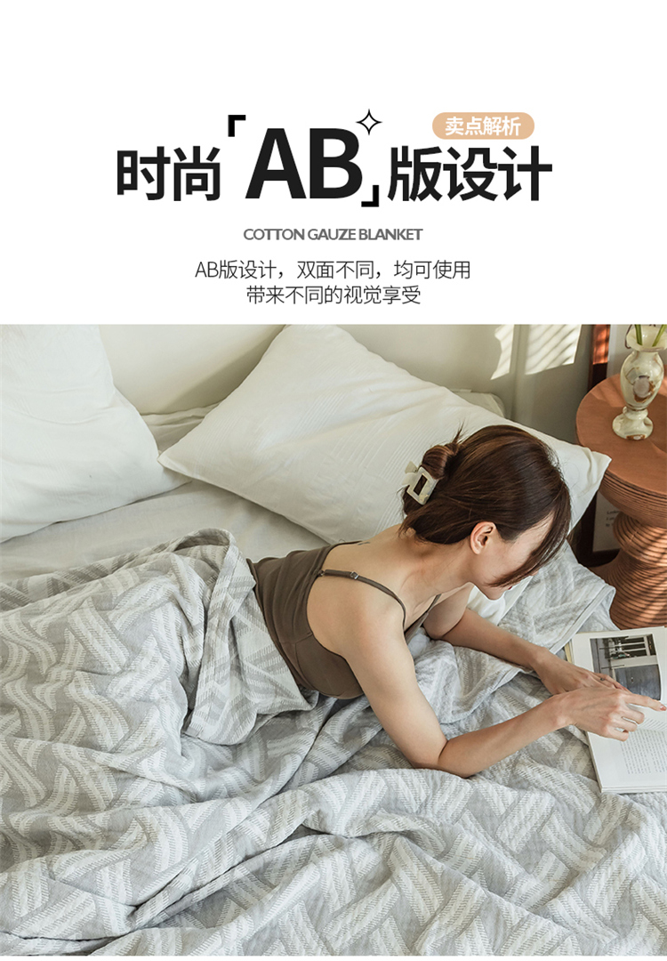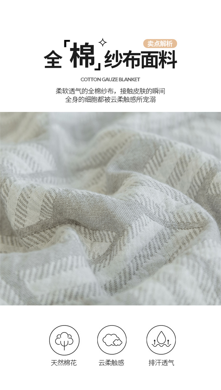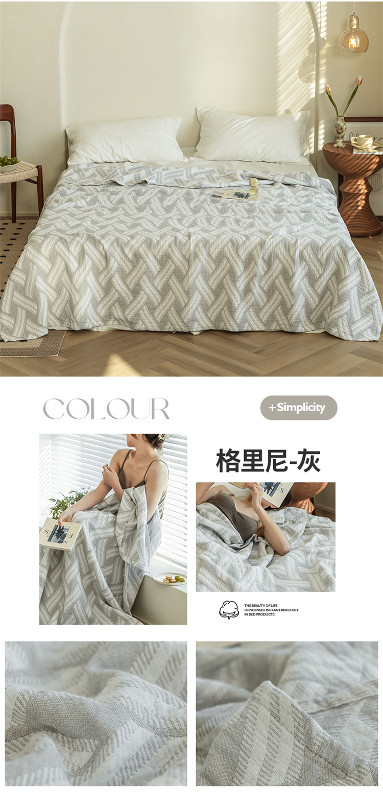 商品名称:雯雨 2023新款塞尚风格全棉纱布毛巾被 格里尼-灰