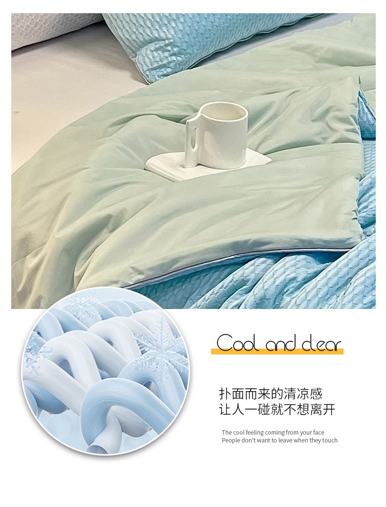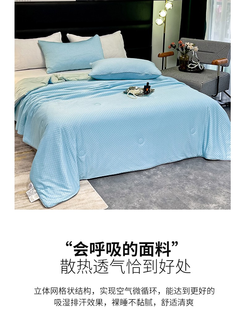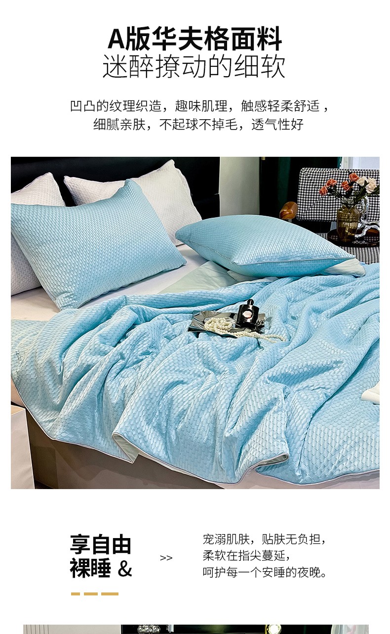 商品名称:慕晨 2023新款A类华夫格凉感丝夏被空调被夏凉被 华夫格蓝绿
