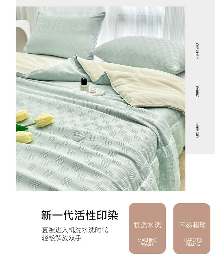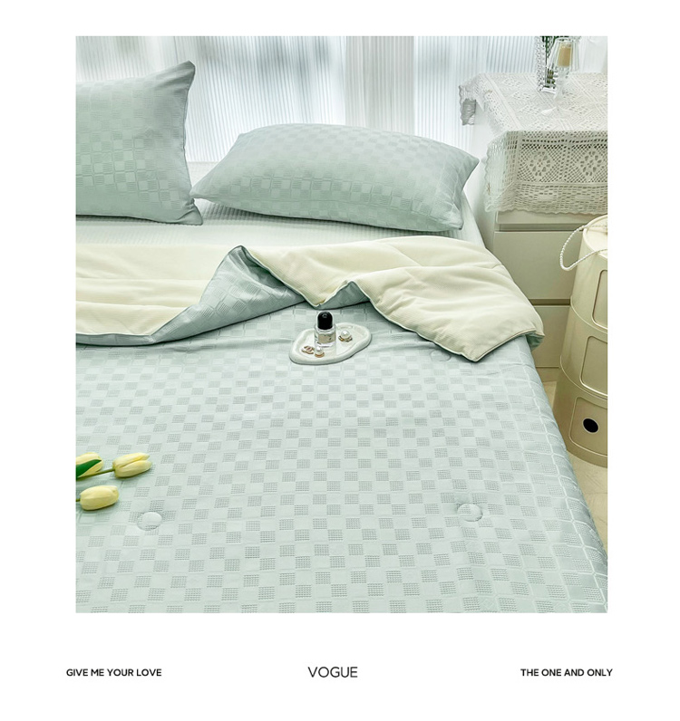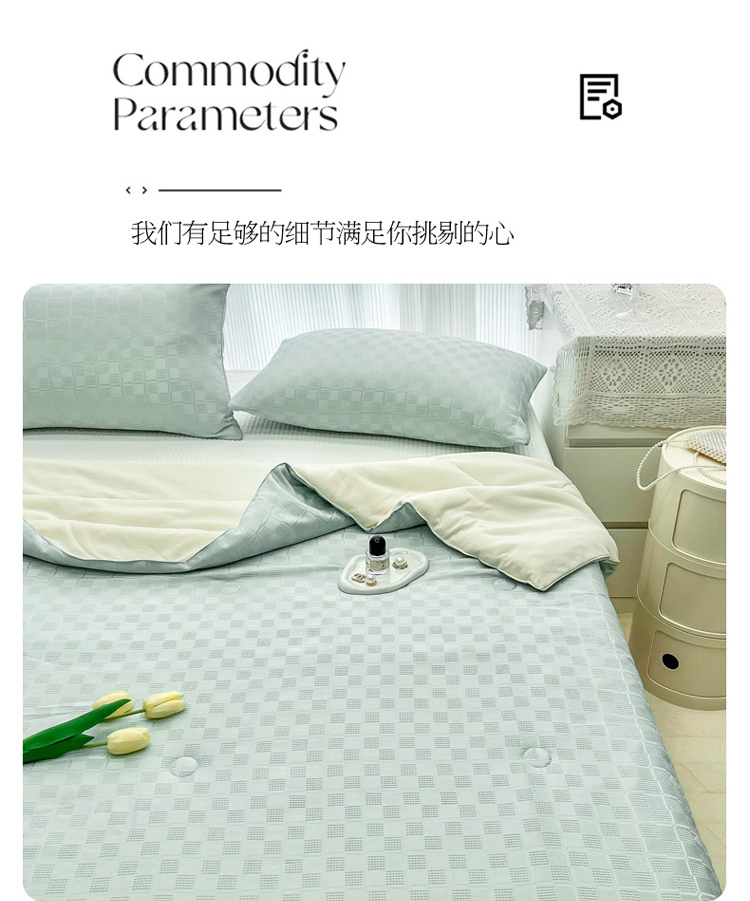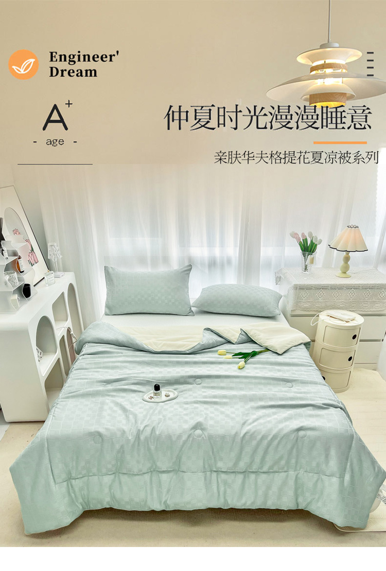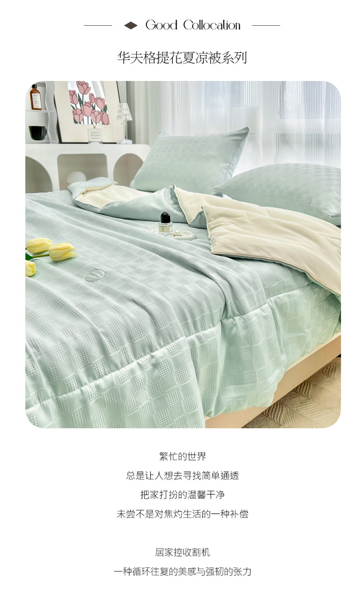 • 91家纺网 家纺一手货源 找家纺 寐居家纺 2023新款华夫格提花夏被 华夫格提花-英伦格绿