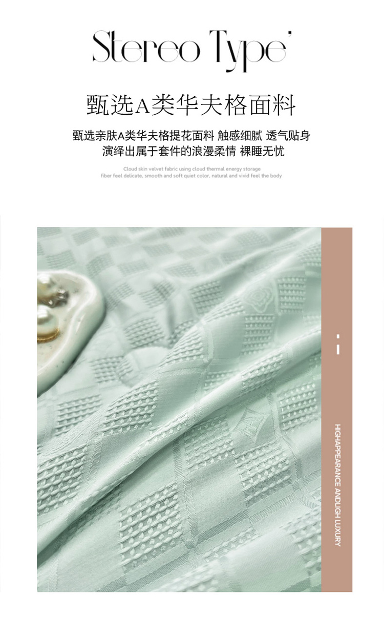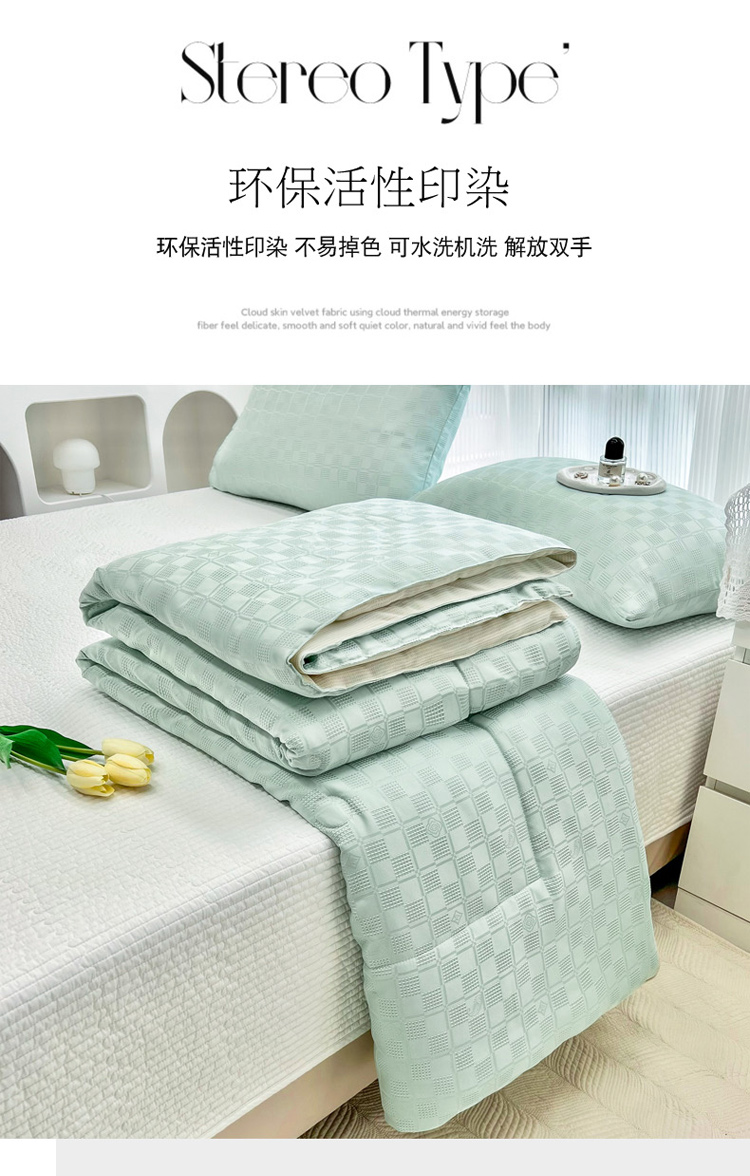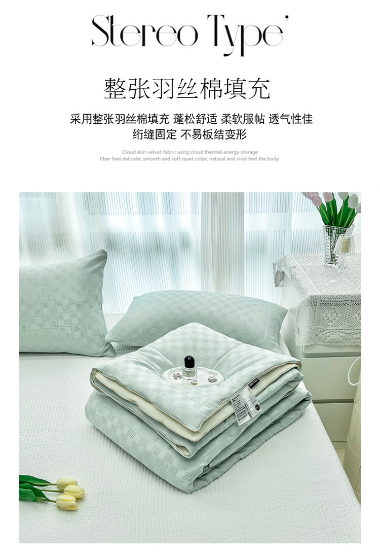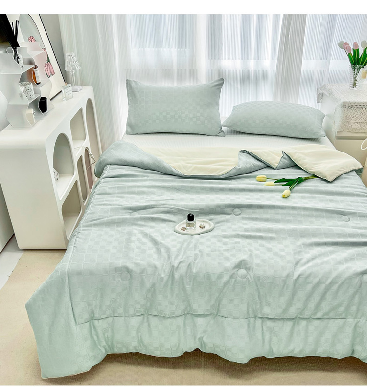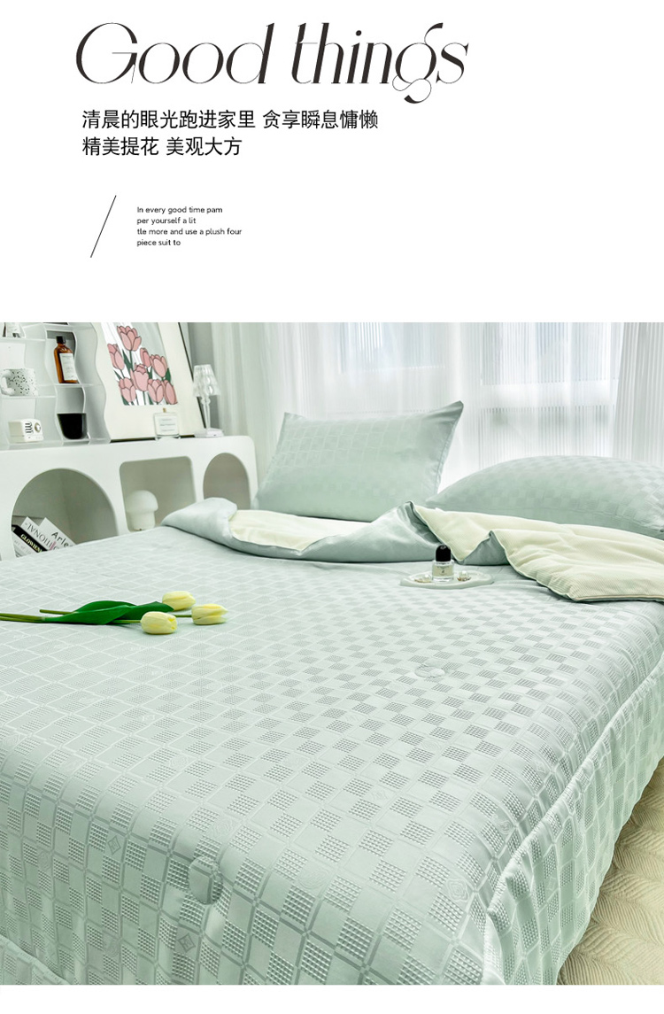 • 91家纺网 家纺一手货源 找家纺 寐居家纺 2023新款华夫格提花夏被 华夫格提花-英伦格绿
