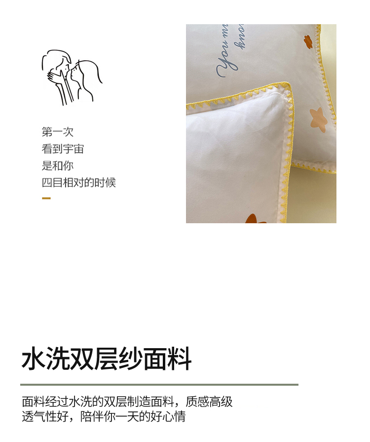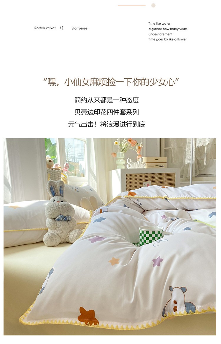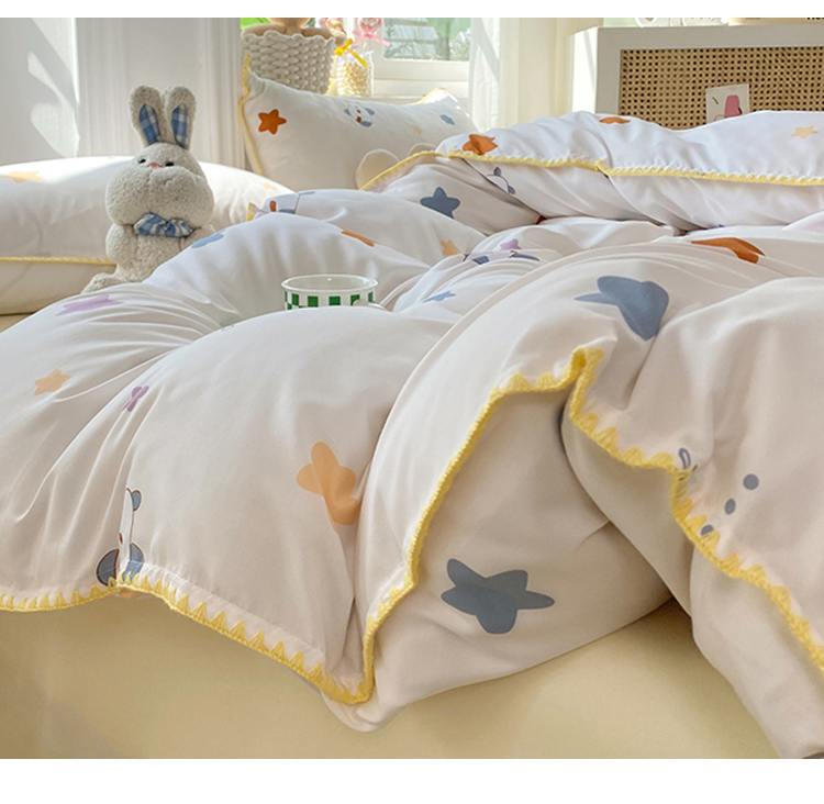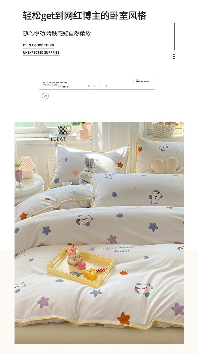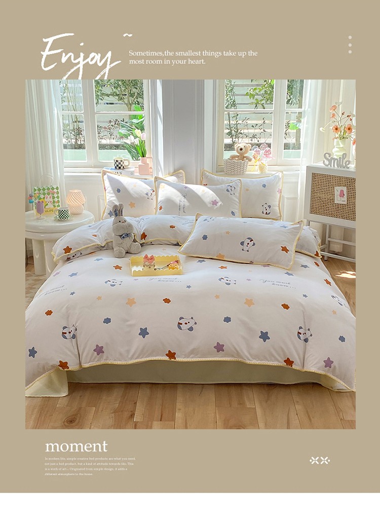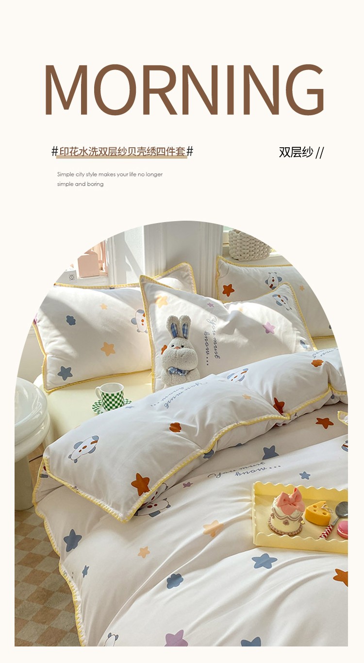 妖妖家纺 2023印花水洗双层纱贝克绣四件套 星星熊猫