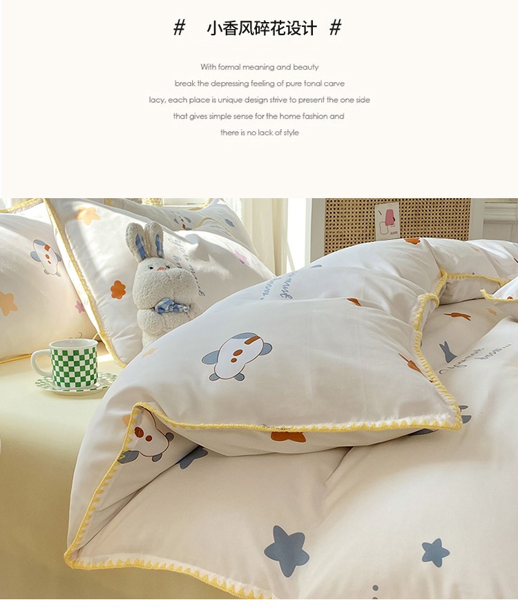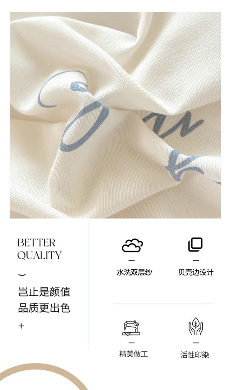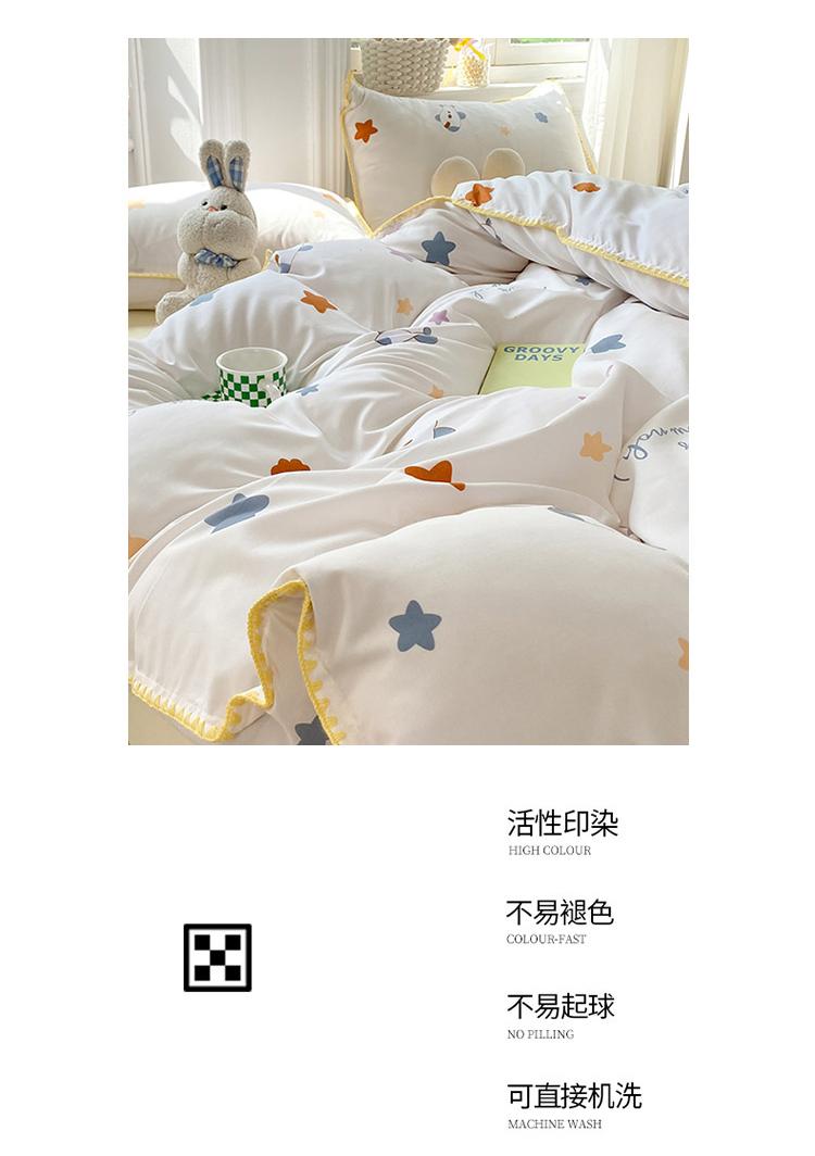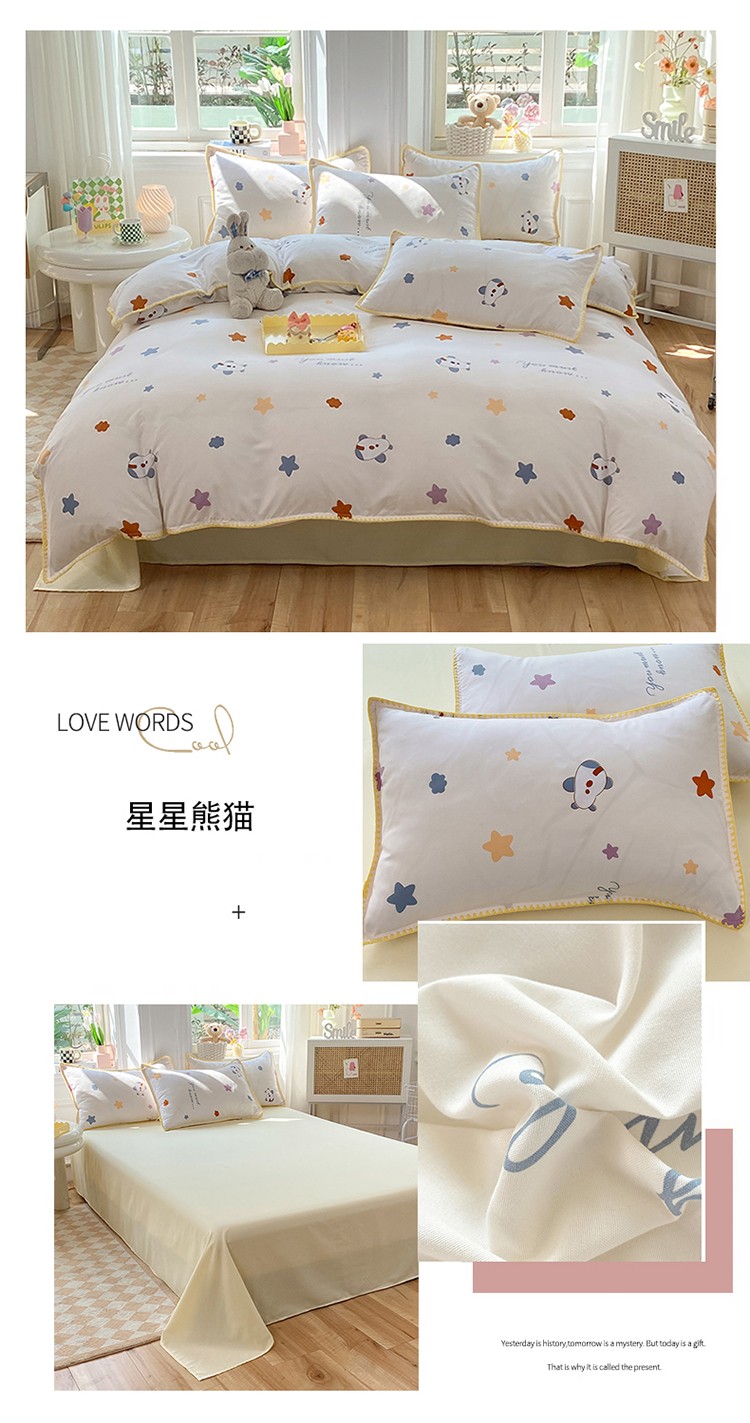 商品名称:妖妖家纺 2023印花水洗双层纱贝克绣四件套 星星熊猫