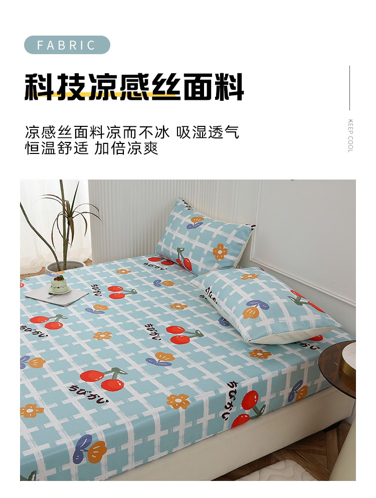 纽缦 2023新款冰丝凉席三件套床笠款 雨果清香-青