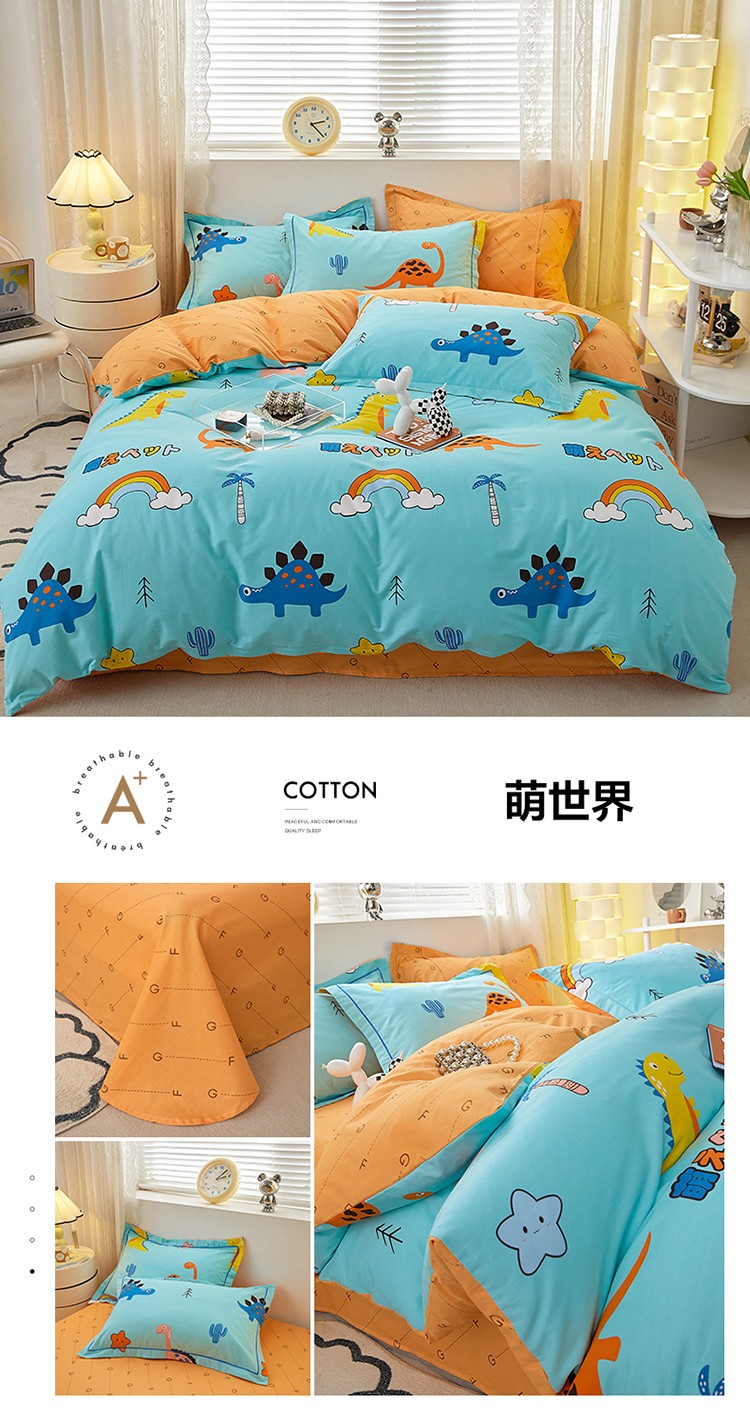 商品名称:金窝窝家纺 2024新款全棉印花小清新四件套 小恐龙