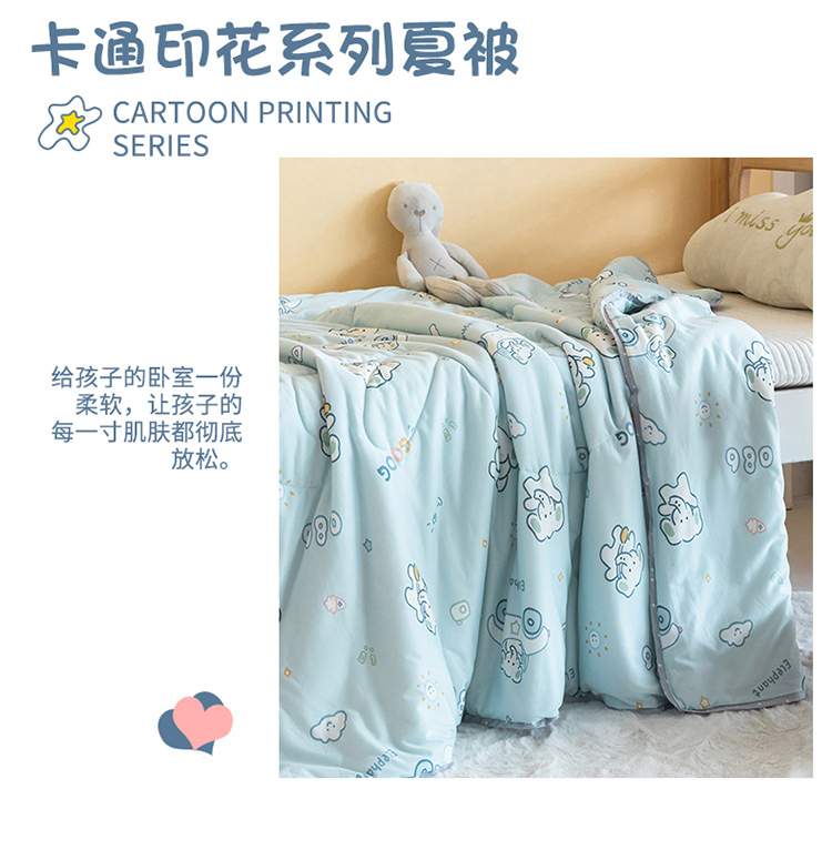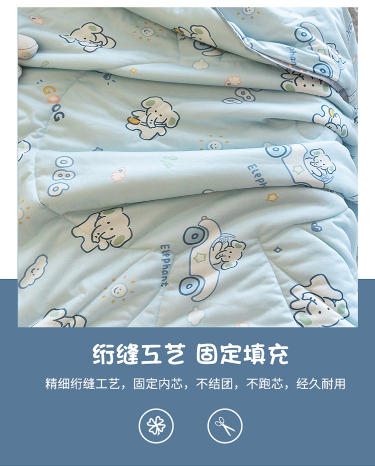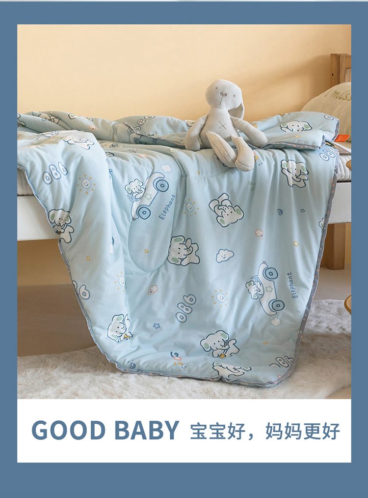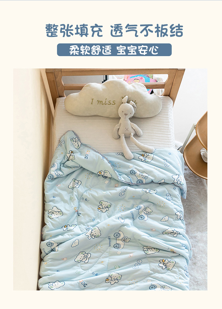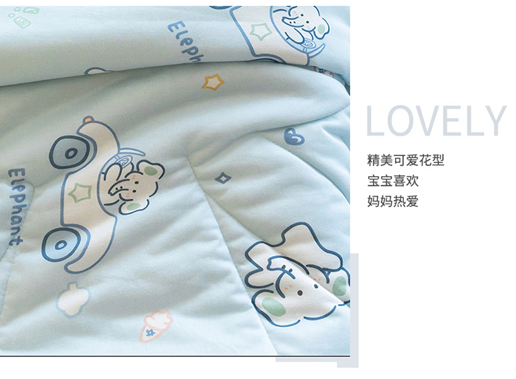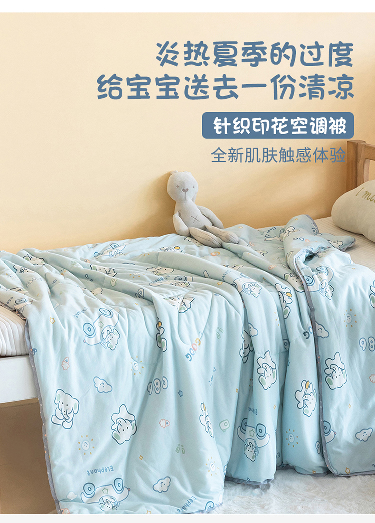 喜多兔儿童家纺 2023年新款针织棉空调被 蓝色奶油小象