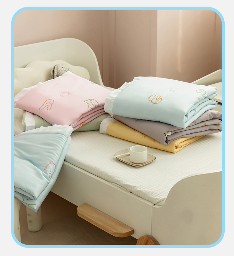(总)喜多兔儿童家纺 2025新款小惊喜儿童蚕丝蛋白天丝抗菌夏凉被,粉色礼貌小鸭,粉色围裙小兔宝,黄色多彩小狗,黄色画画小猫,灰蓝色活动熊猫,灰蓝色运动小狮子,卡其色勤劳小马,卡其色围兜小熊,绿色萌萌恐龙,绿色微笑小猴