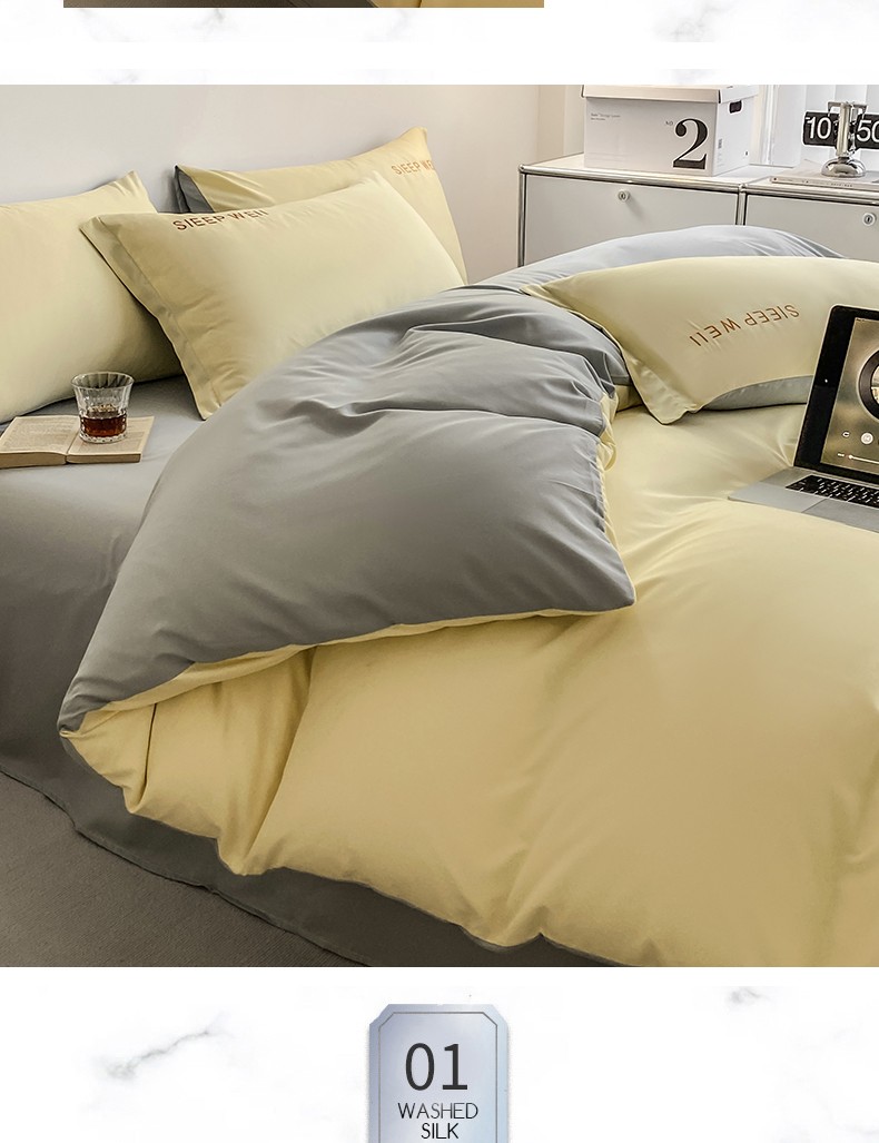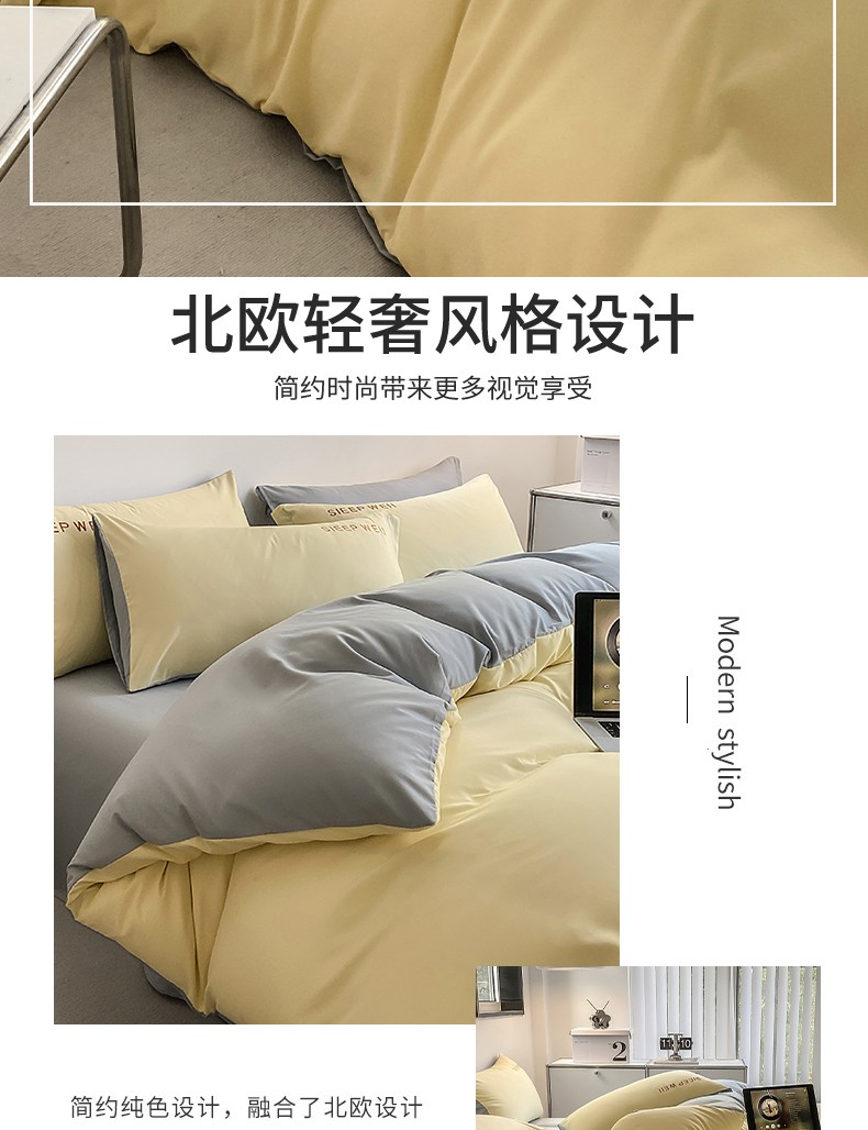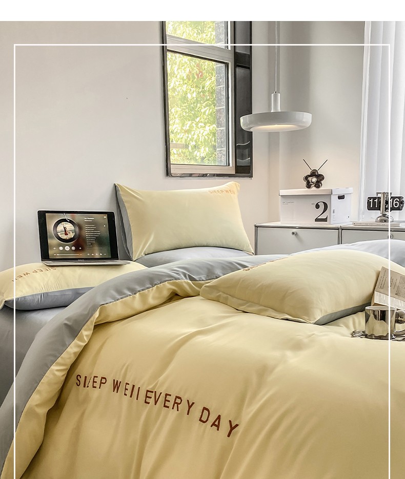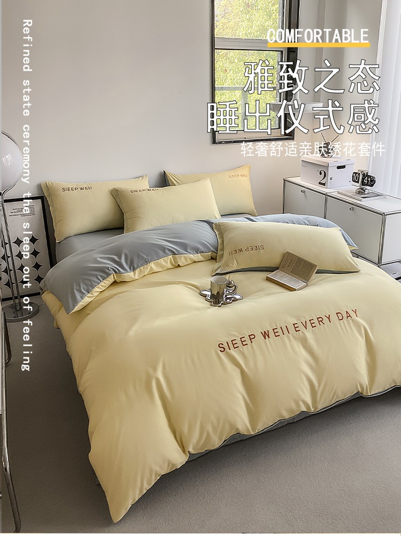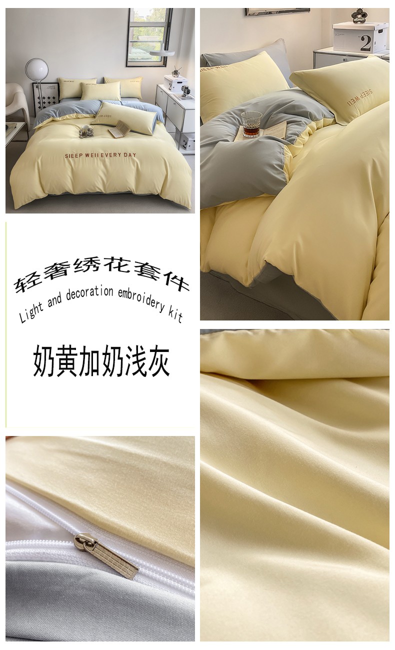 当前位置: 91家纺网 > 商品网购 > 床品套件 > 四件套 > 普通磨毛四件套 > 啊雅 2025新款双拼绣花四季款磨毛四件套 奶黄加奶浅灰