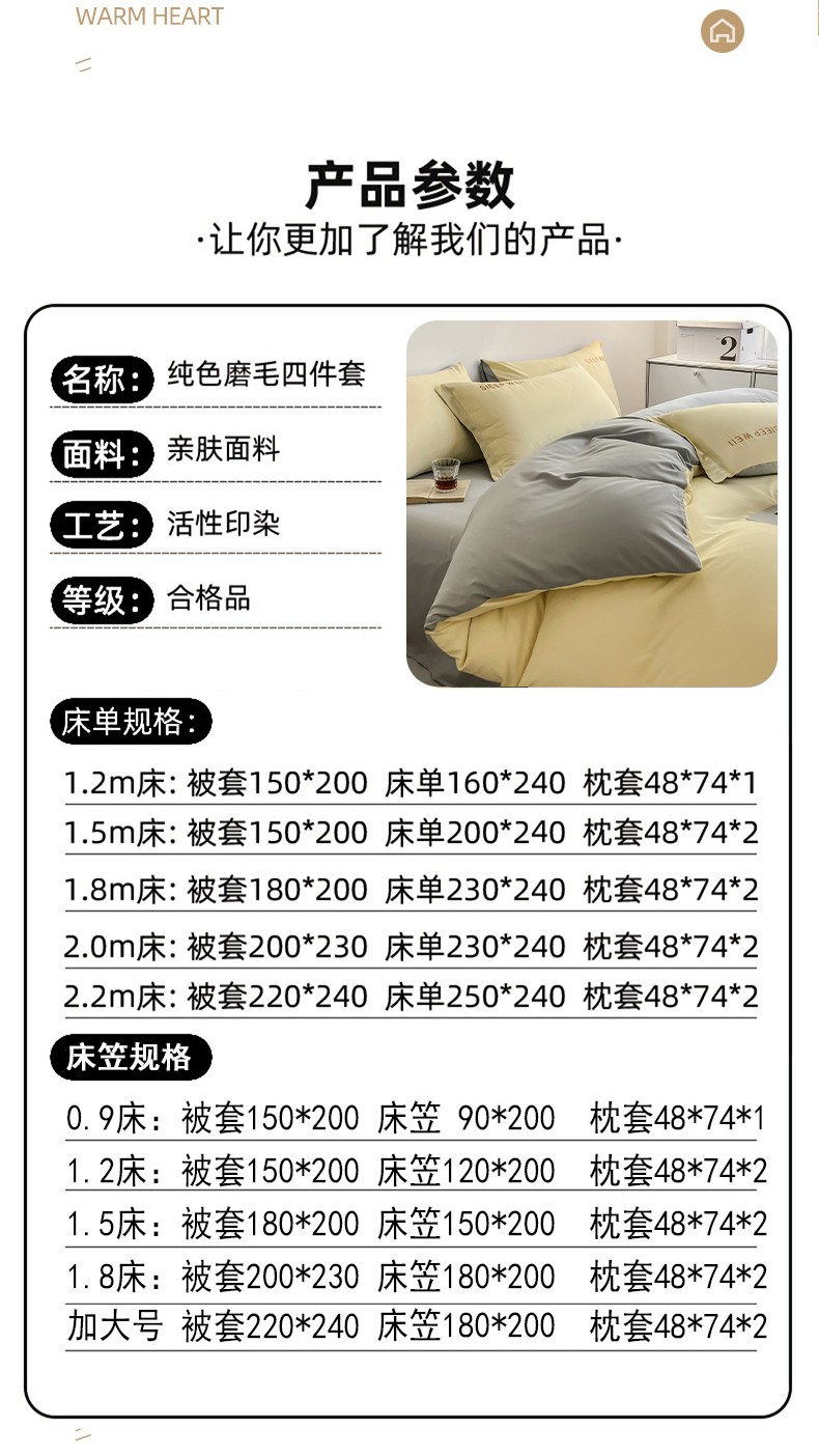 1.8m床单款四件套(180*220cm被套 230*240cm床单 48*74cm*2枕套) | ¥52.00 |