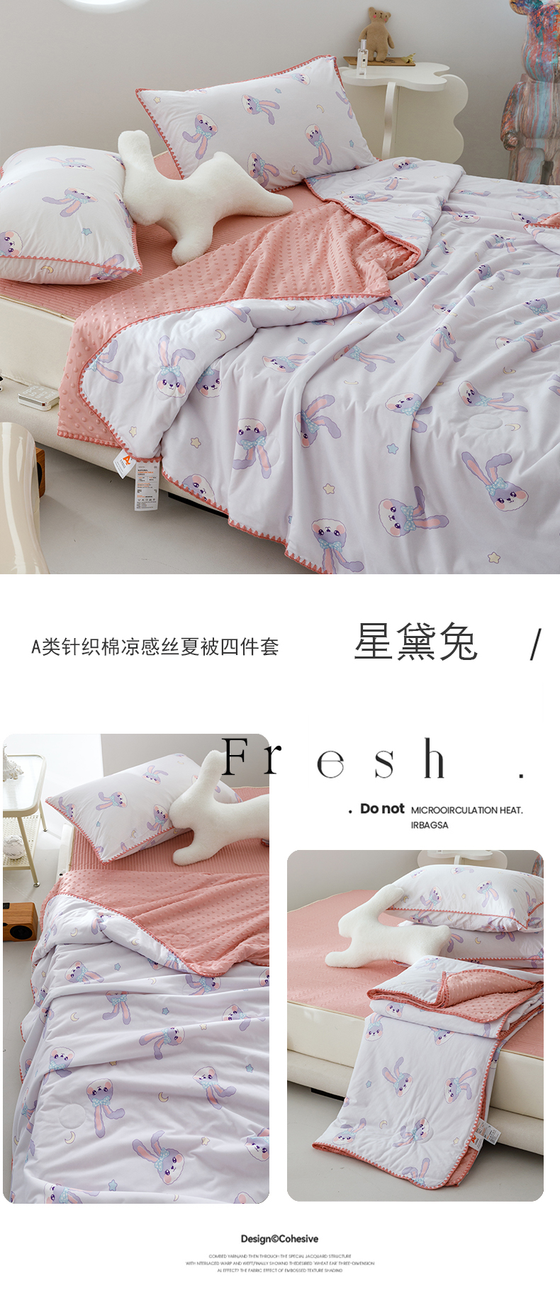 当前位置: 91家纺网 > 商品网购 > 床上用品 > 凉席 > 凉席套件 > 花漾 2024新款A类针织棉凉感丝夏被凉席四件套自然光 星黛兔