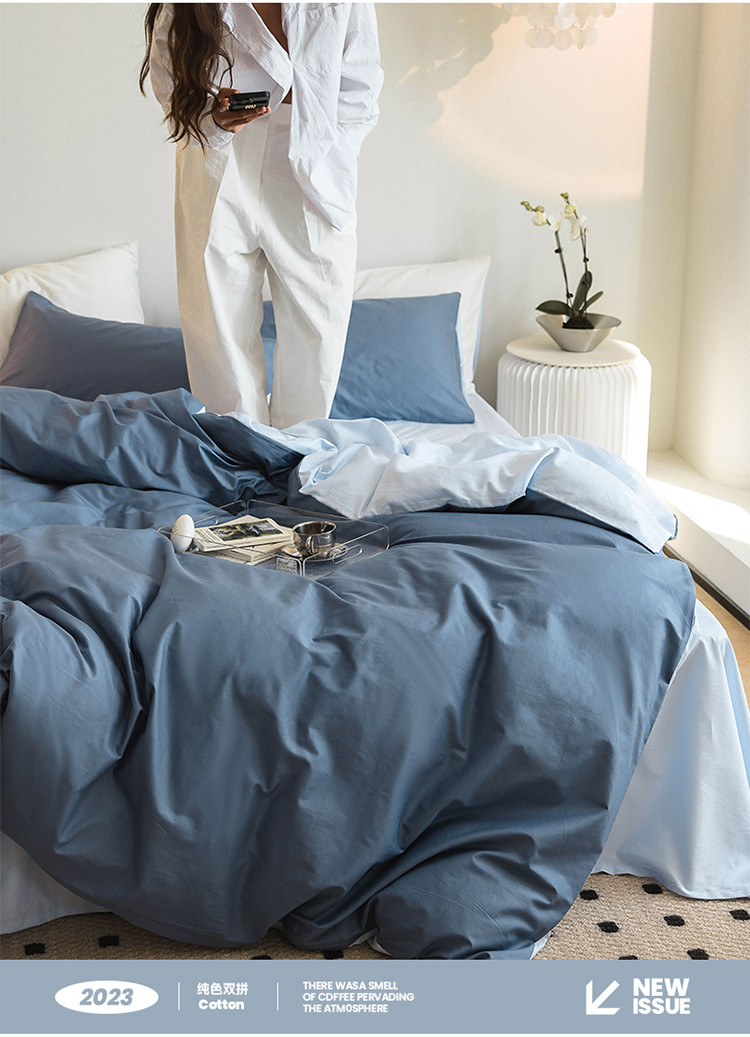 (总)寐眠 2023新款40支长绒棉全棉纯棉纯色双拼四件套