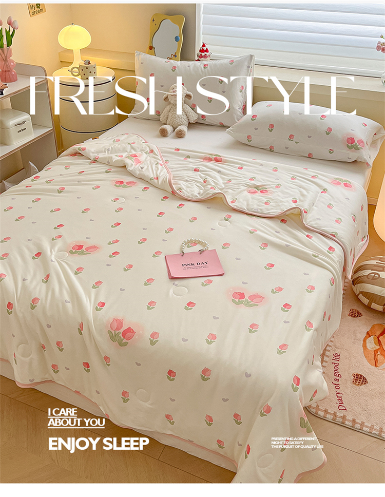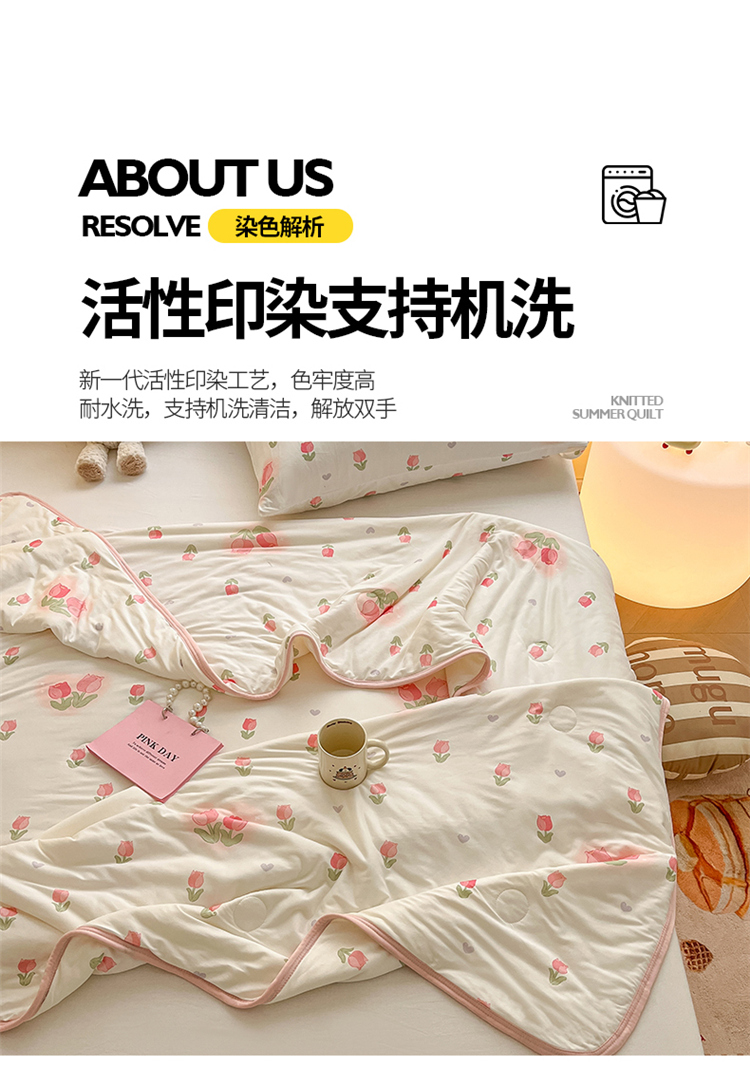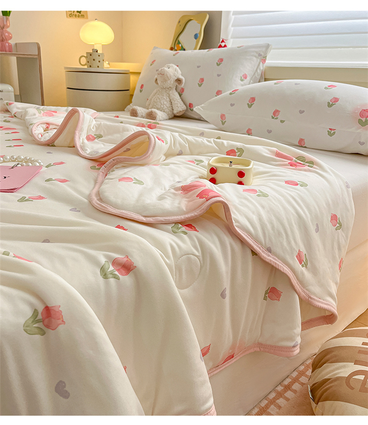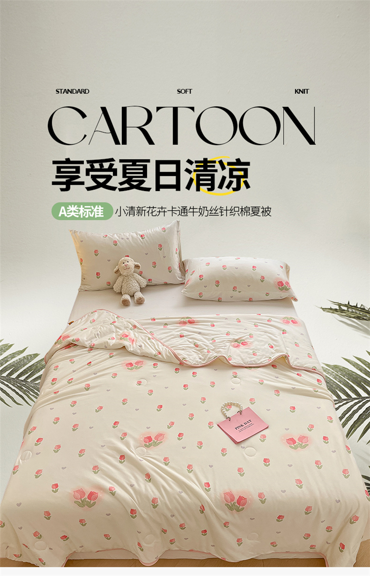 • 91家纺网 家纺一手货源 找家纺 桃子 2023新款A类ins高品质小清新花卉卡通牛奶丝针织棉夏被 针织棉夏被-奶油郁金香粉