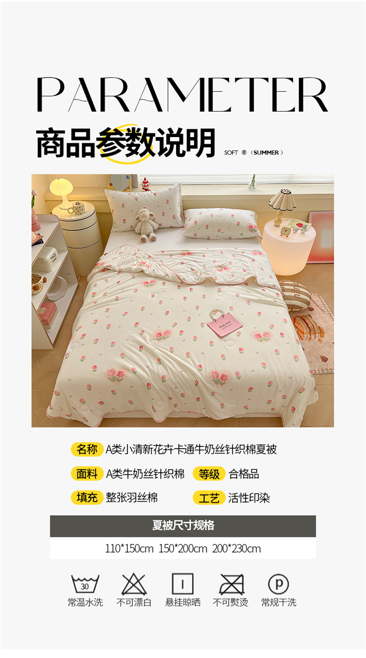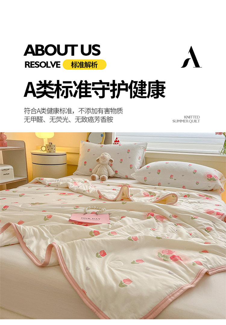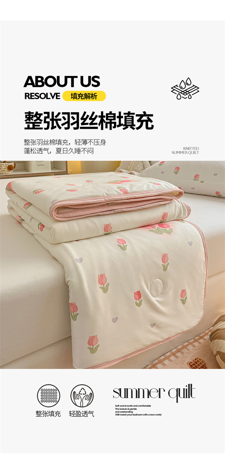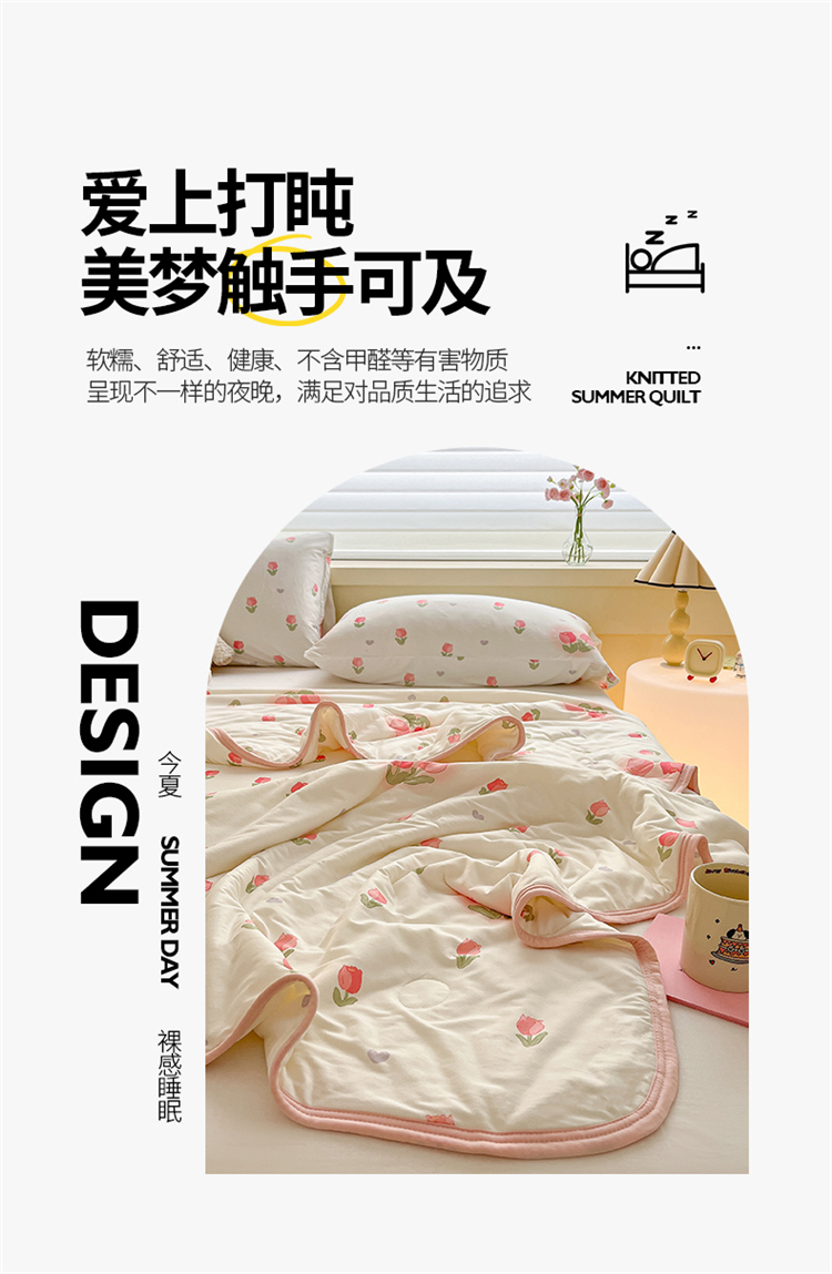 • 91家纺网 家纺一手货源 找家纺 桃子 2023新款A类ins高品质小清新花卉卡通牛奶丝针织棉夏被 针织棉夏被-奶油郁金香粉