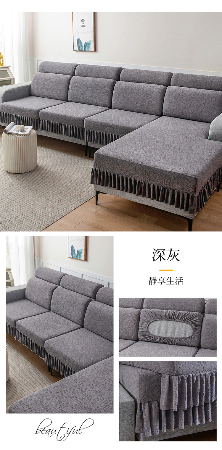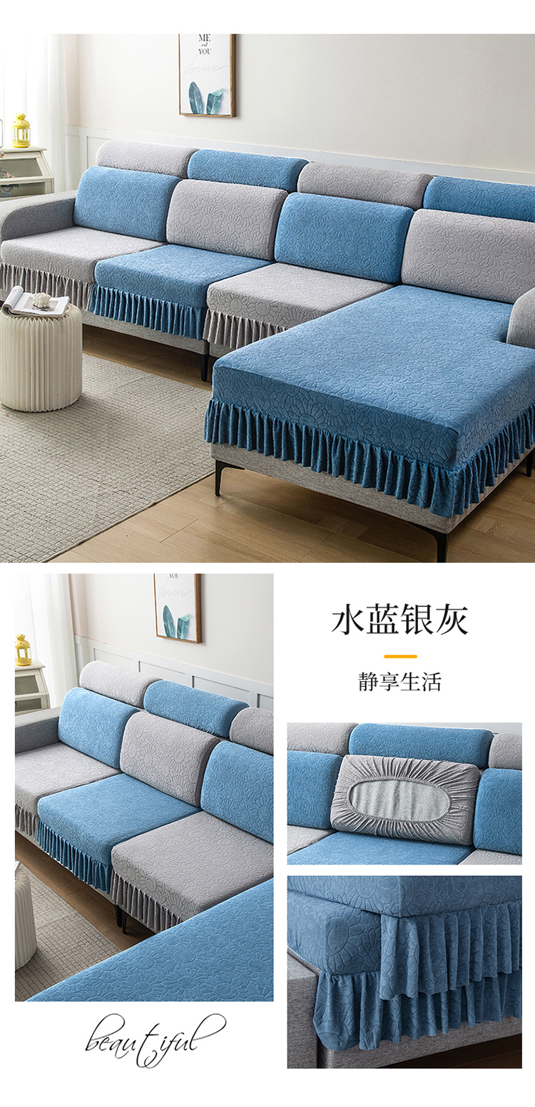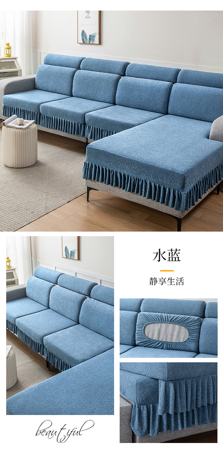 (总)千彤沙发垫 2025新款防滑防尘优雅百褶裙边全包款沙发笠沙发套罩--三叶草系列,浅灰,豆沙,孔雀蓝,浅绿,深灰,水蓝