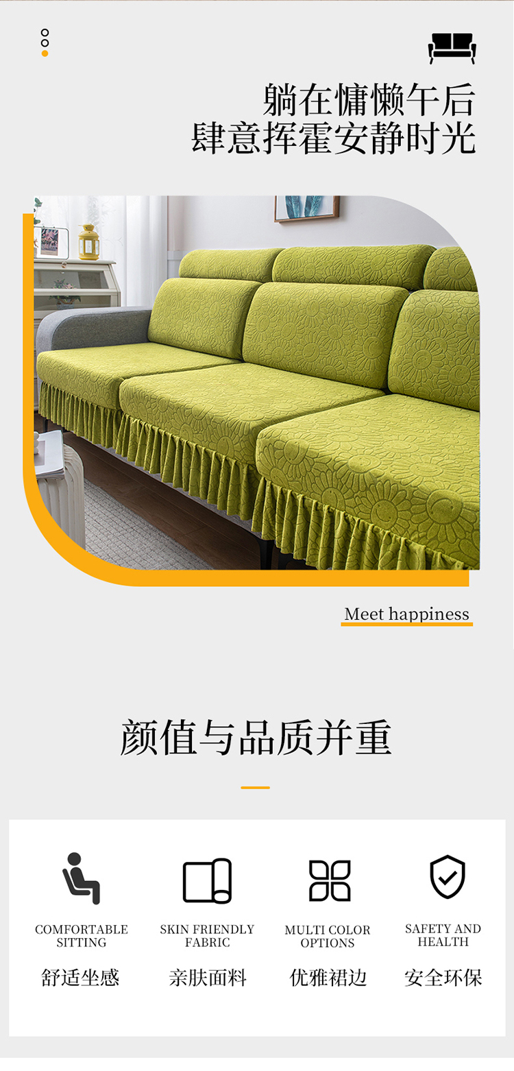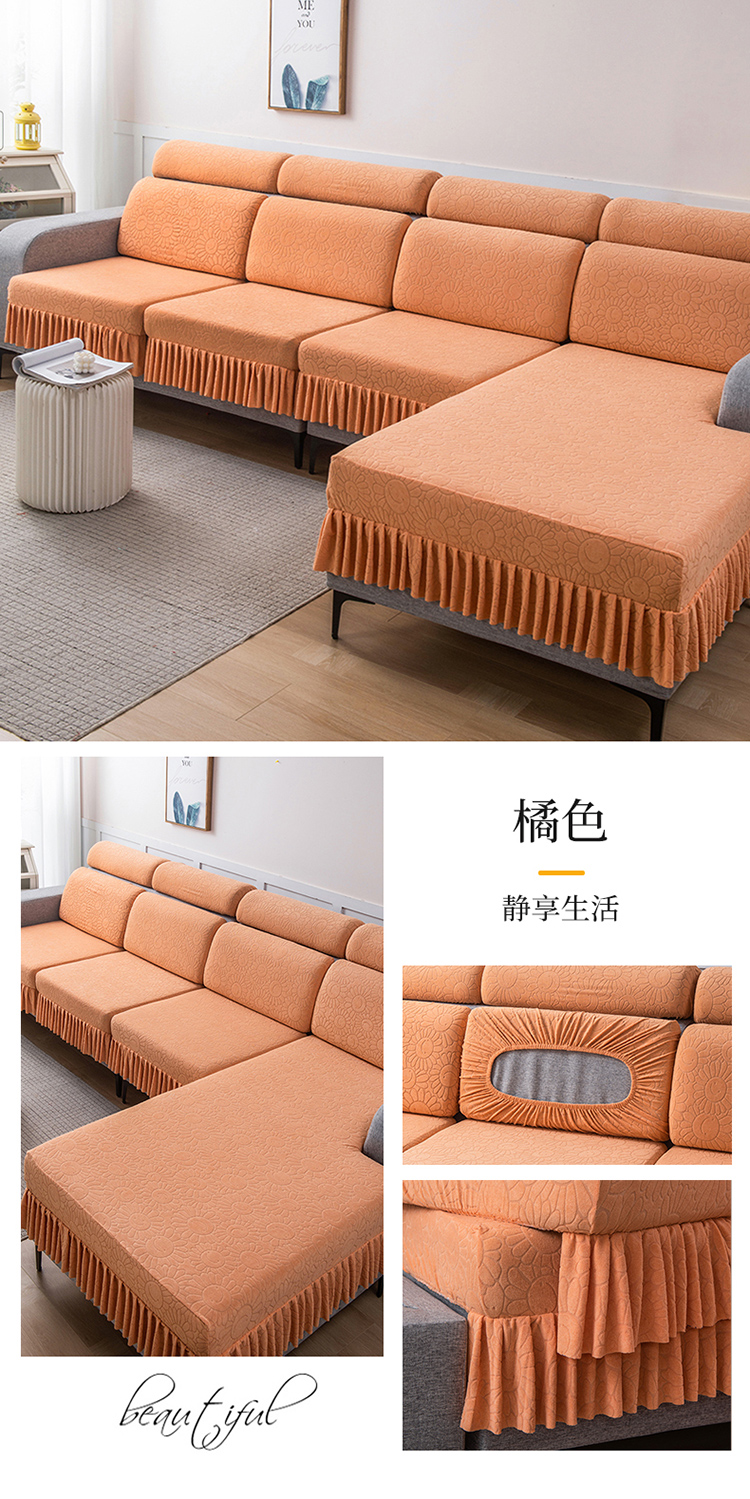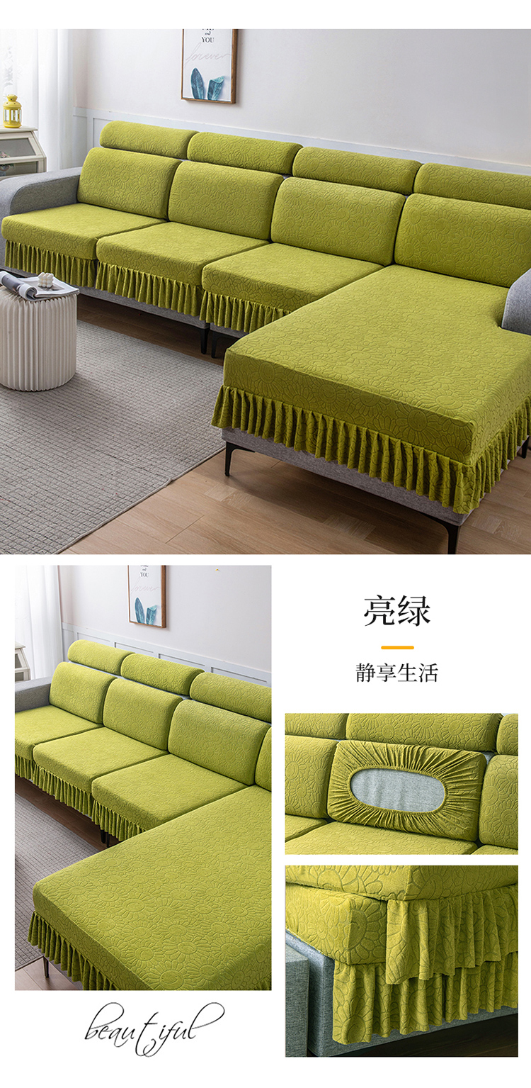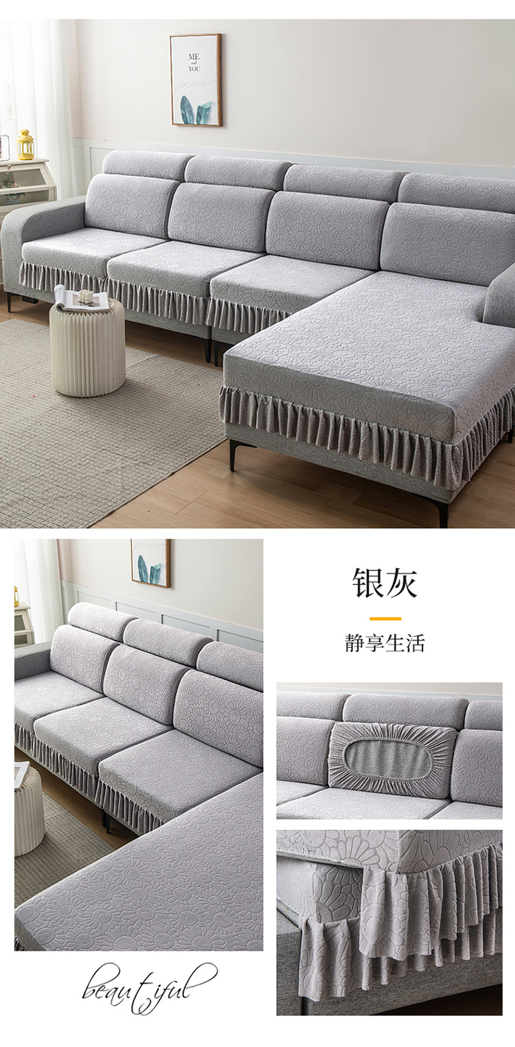 (总)千彤沙发垫 2025新款防滑防尘优雅百褶裙边全包款沙发笠沙发套罩--三叶草系列,浅灰,豆沙,孔雀蓝,浅绿,深灰,水蓝