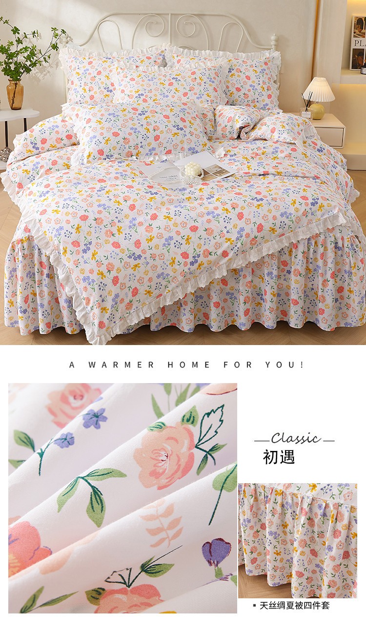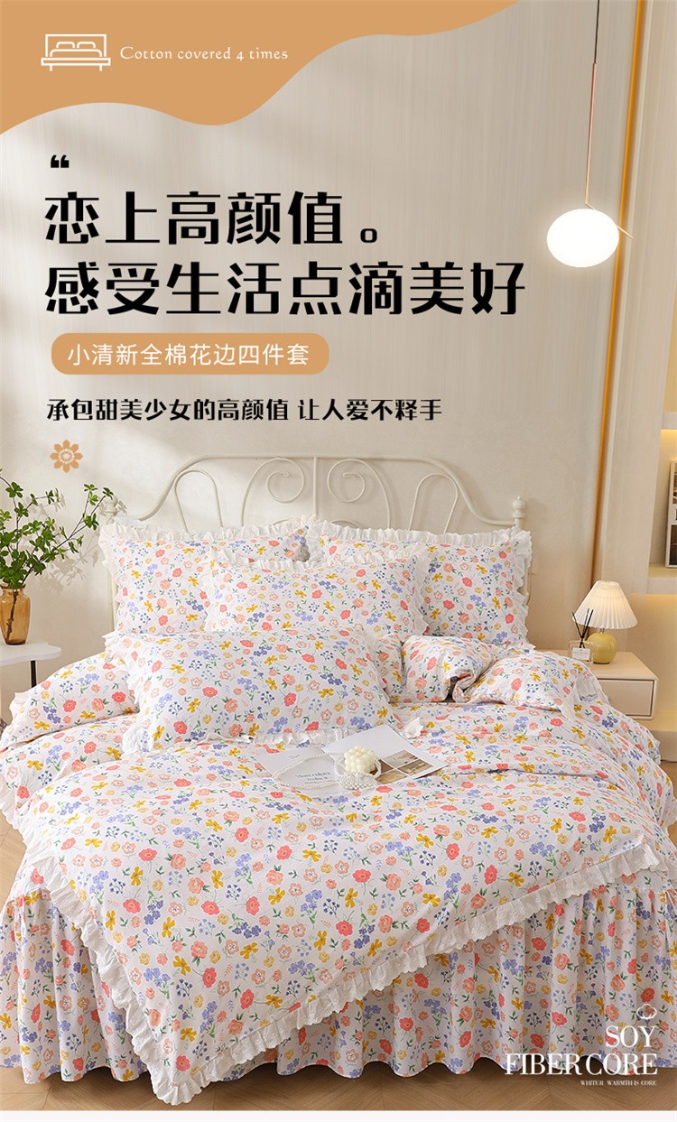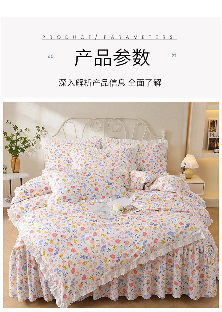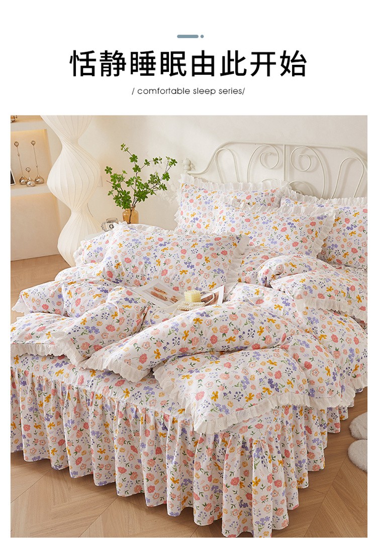 当前位置: 91家纺网 > 商品网购 > 床品套件 > 四件套 > 全棉普通四件套 > 十个点2024新款初遇系列 全棉床裙小清新四件套 初遇