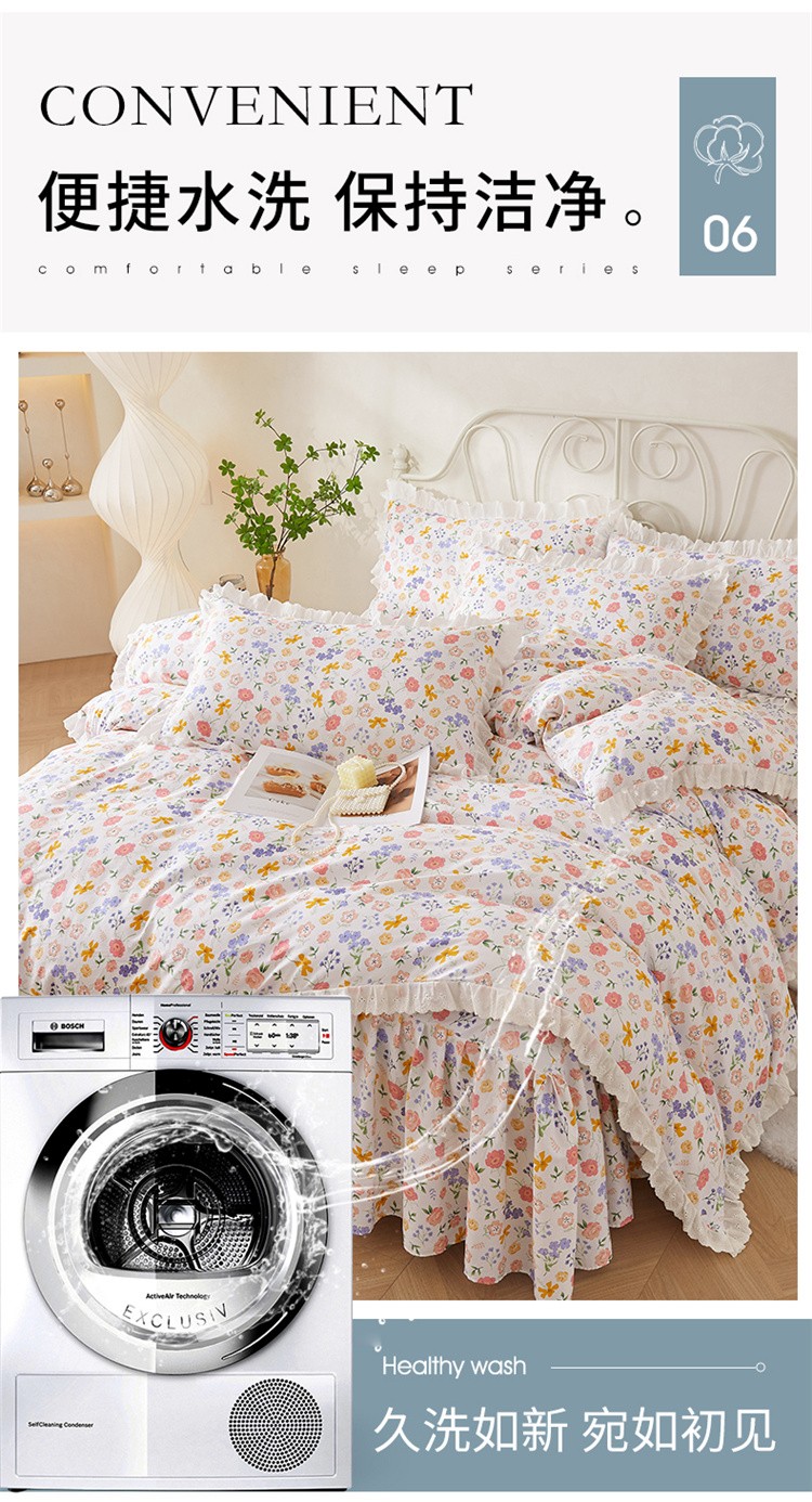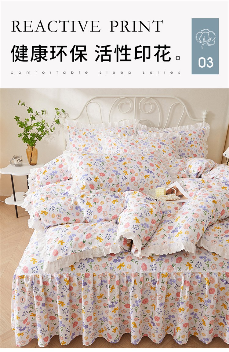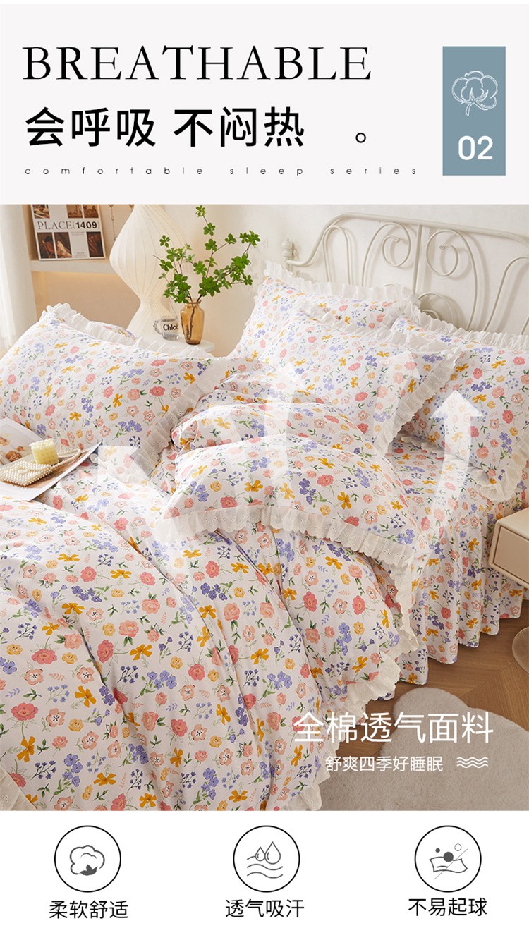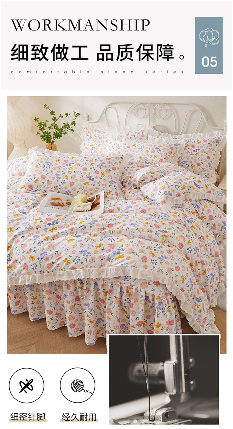当前位置: 91家纺网 > 商品网购 > 床品套件 > 四件套 > 全棉普通四件套 > 十个点2024新款初遇系列 全棉床裙小清新四件套 初遇