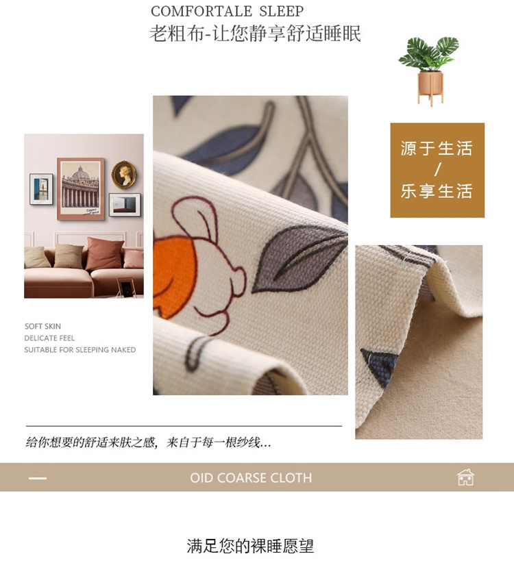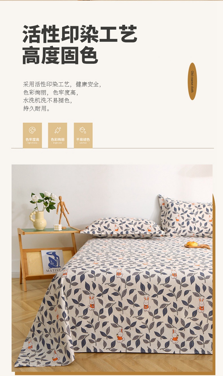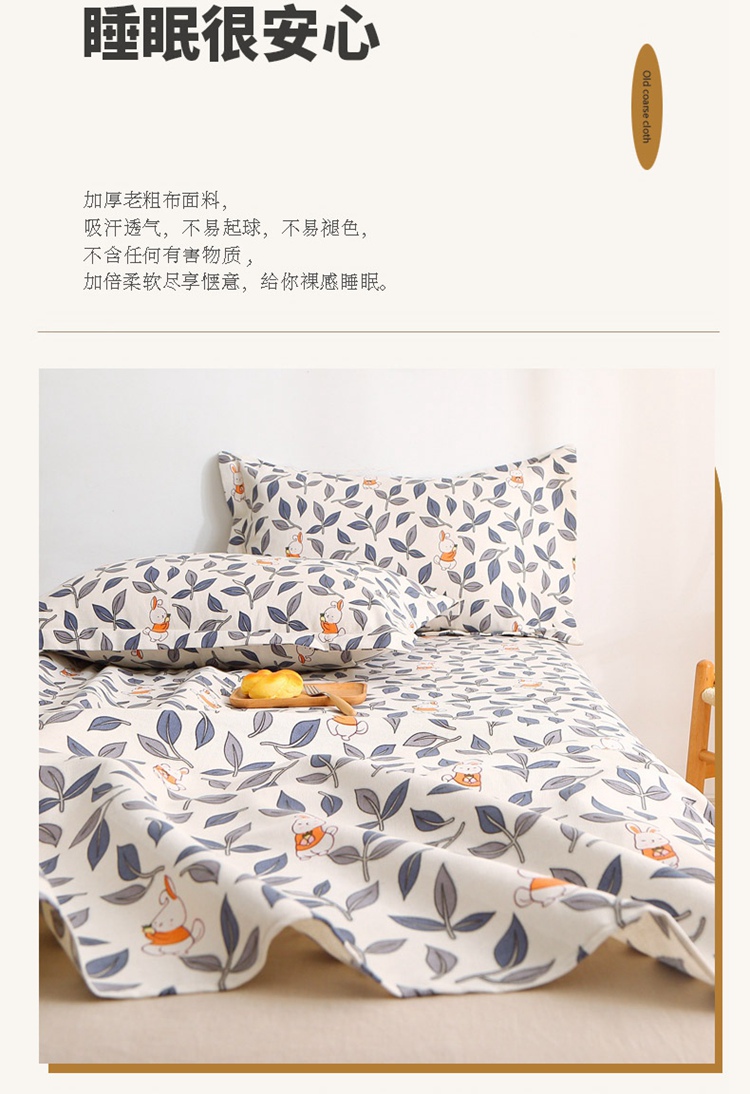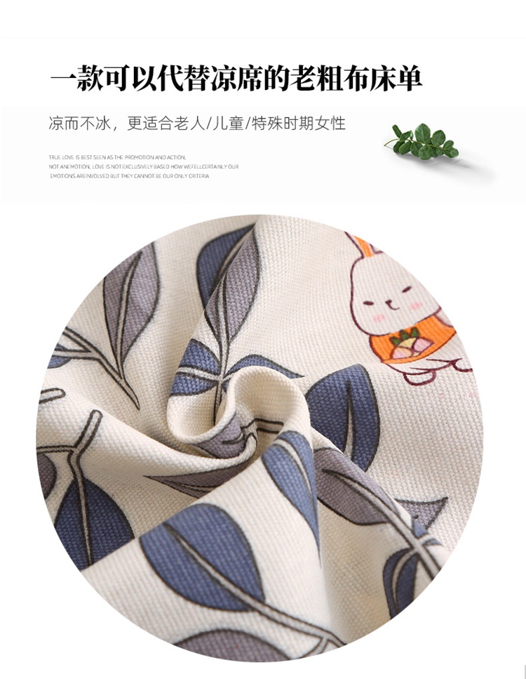 商品名称:晶缦2023新款全棉老粗布凉席三件套 碎花兔