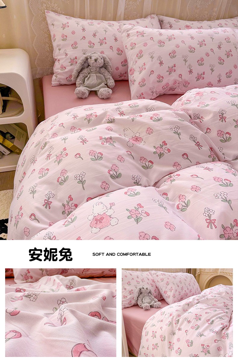 当前位置: 91家纺网 > 商品网购 > 床品套件 > 四件套 > 化纤普通四件套 > 港岛妹妹 2024新款水洗双层纱四件套四件套 安妮兔