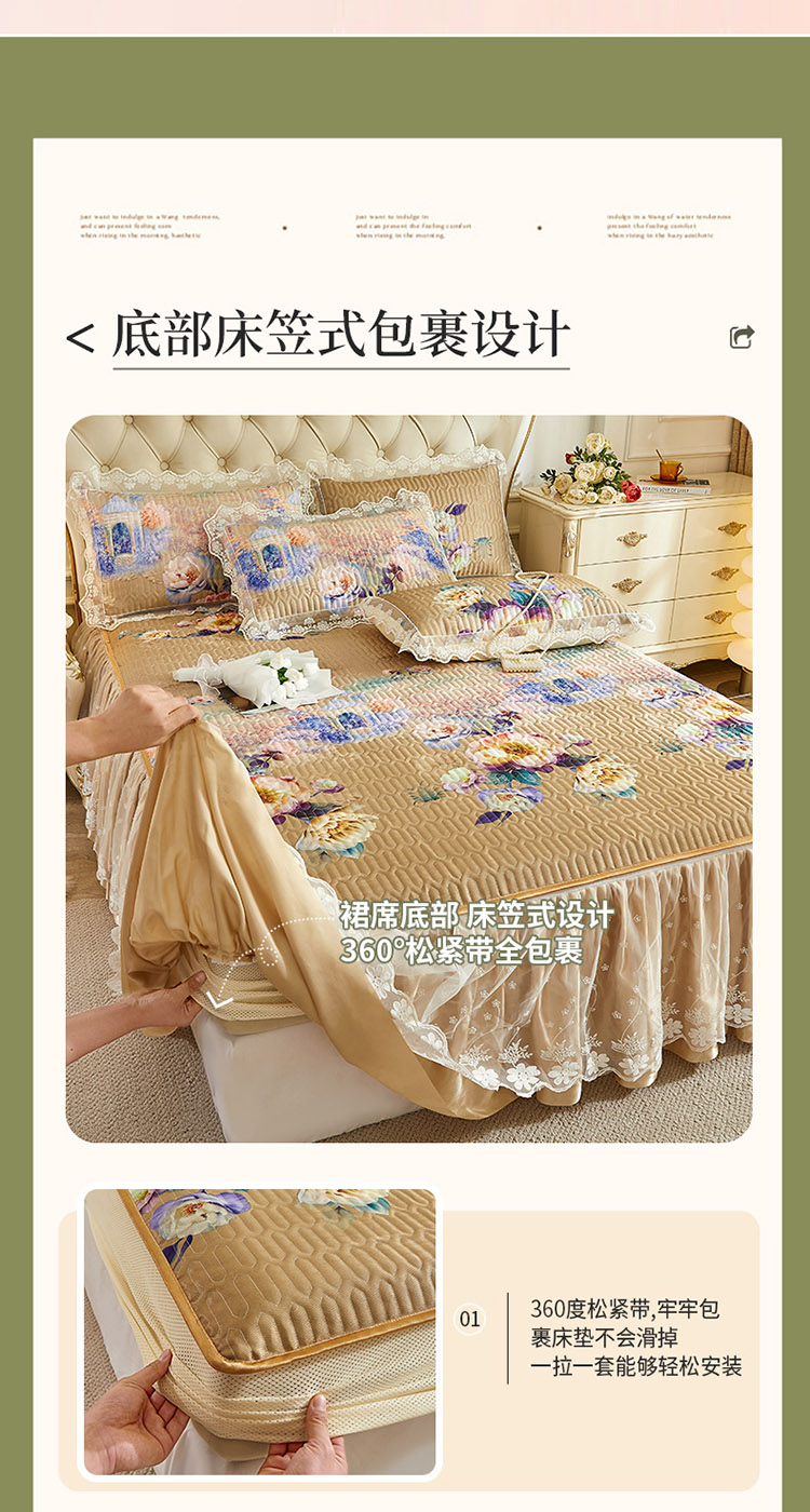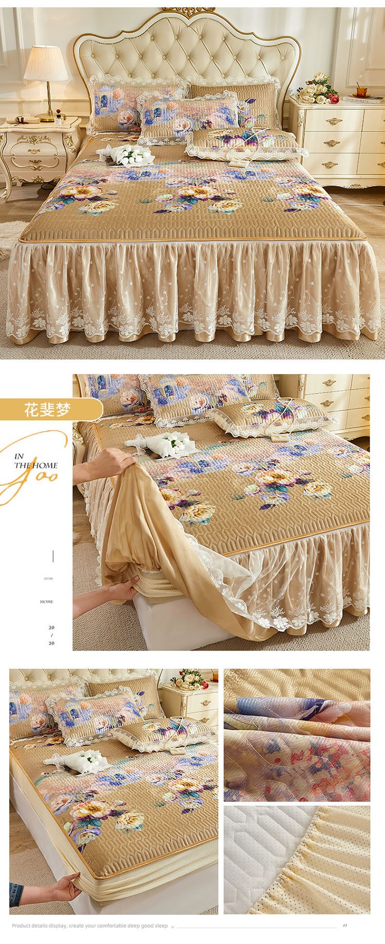 恋尚 2024新款床笠式可拆卸冰丝夹棉 床裙软席三件套 花斐梦