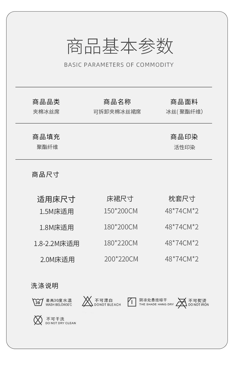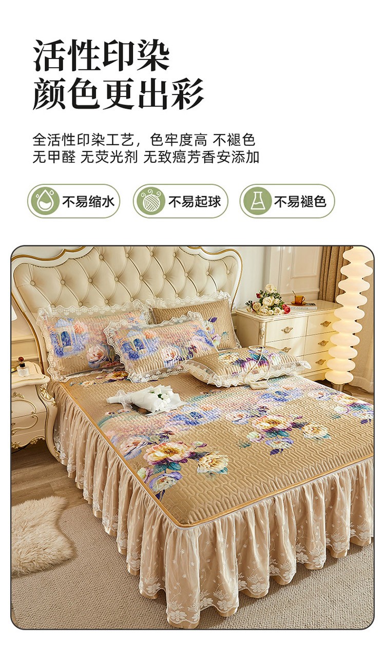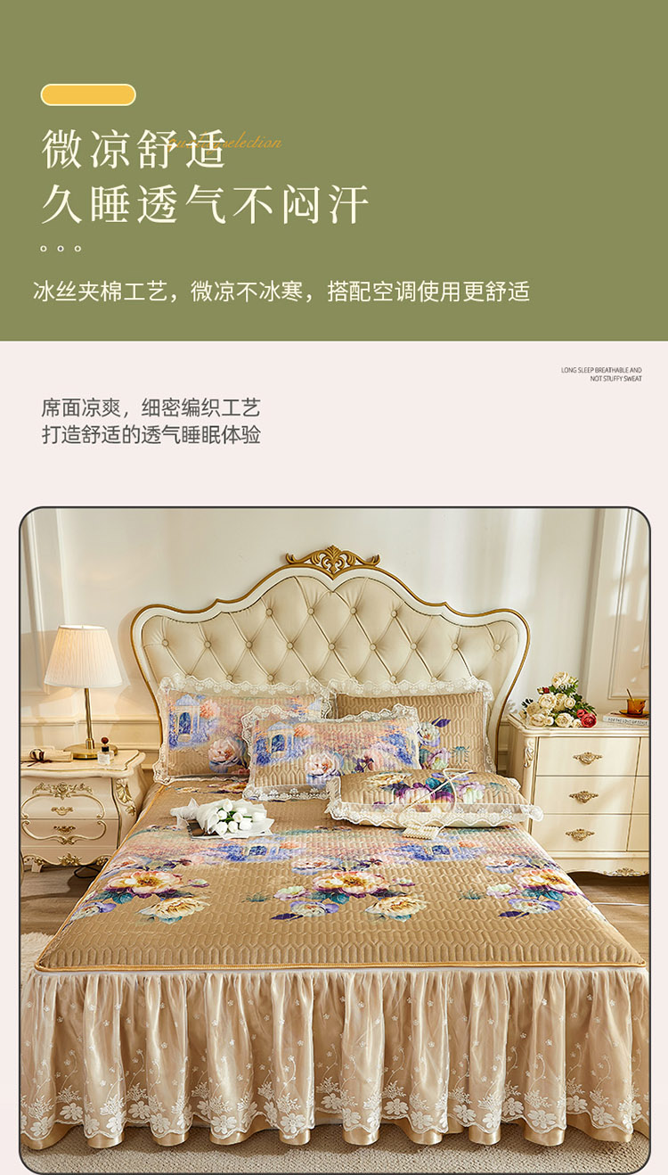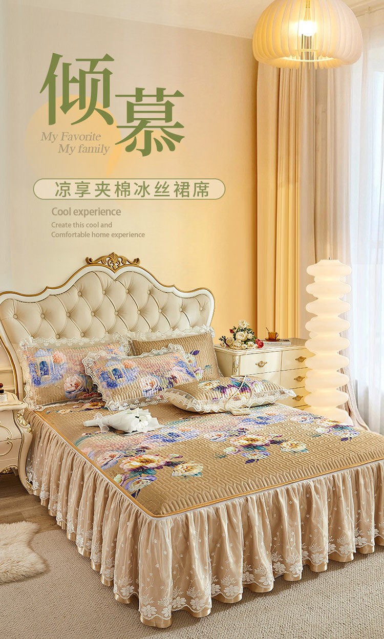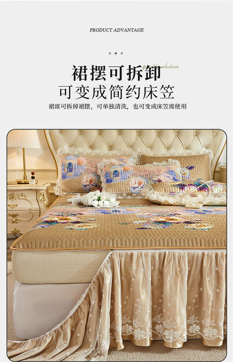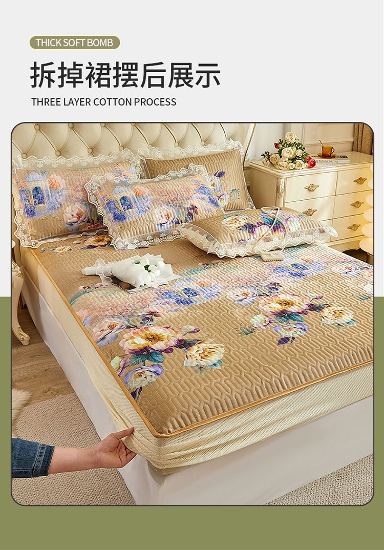 商品名称:恋尚 2024新款床笠式可拆卸冰丝夹棉 床裙软席三件套 花斐梦