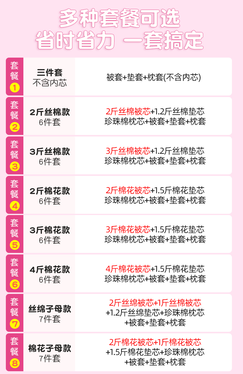 套餐二:2斤丝绵六件套 | ¥95.00 |