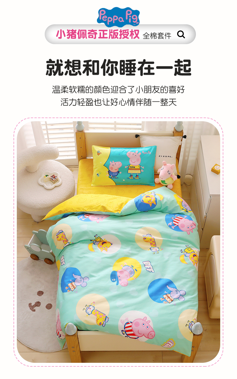 当前位置: 91家纺网 > 商品网购 > 婴童用品 > 婴童床品套件 > 鱼宝 2023新款13372全棉小猪佩奇授权幼儿园多件套 佩奇家族
