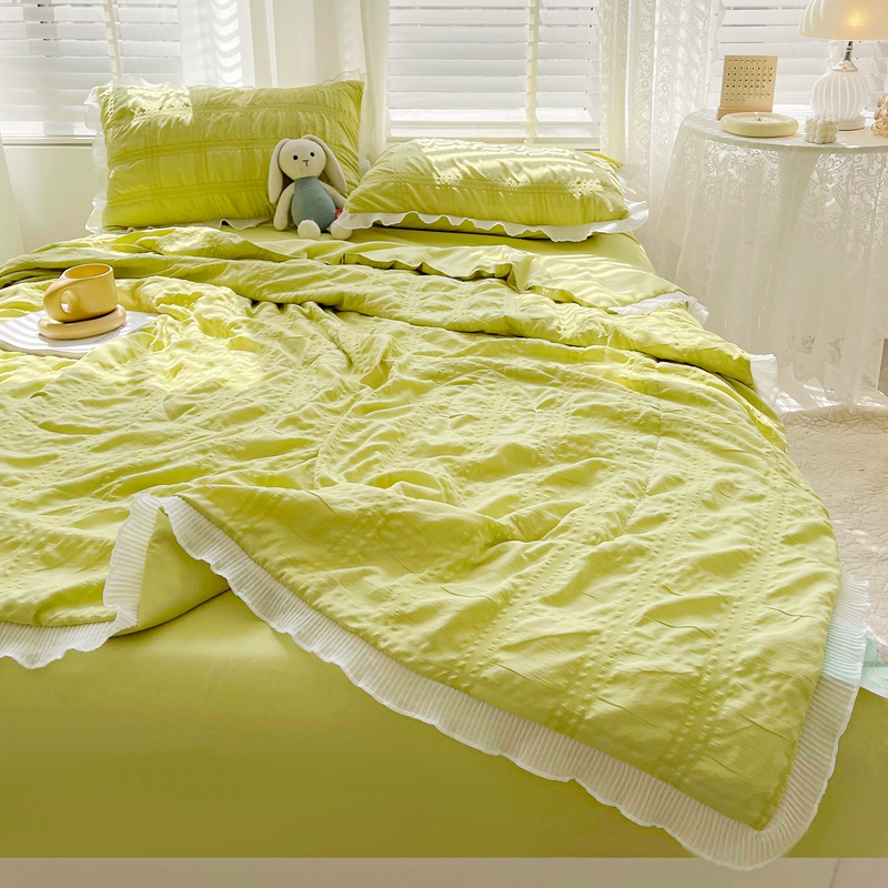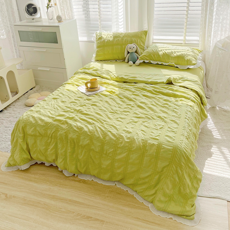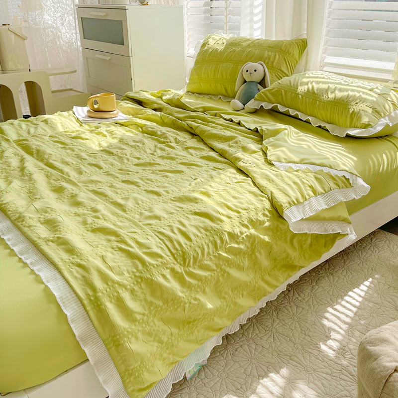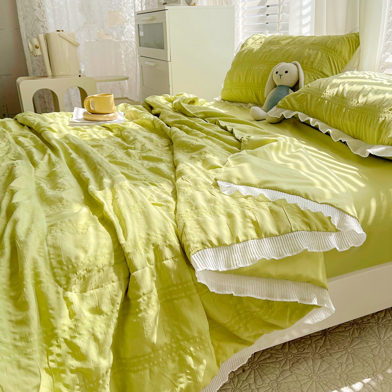 蓝冰家纺 2023新款泡泡纱夏被三件套 墨绿色