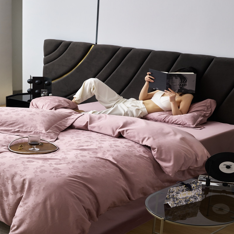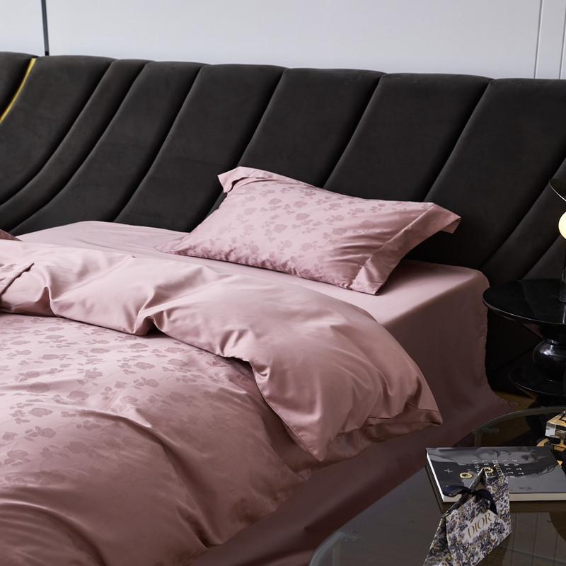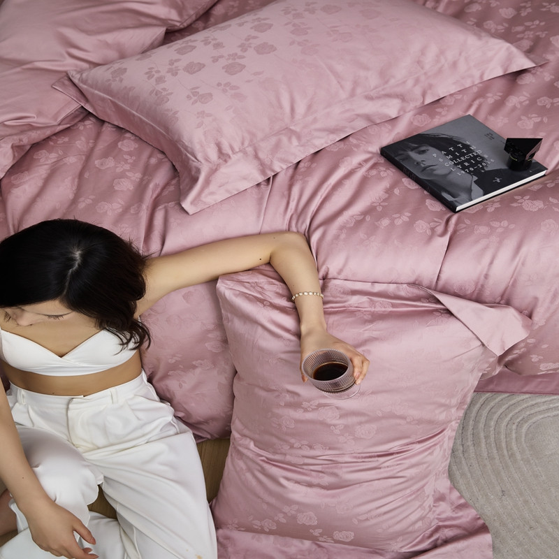 安莱生活 2023新款 100S纯棉提花四件套 恬静花开-粉