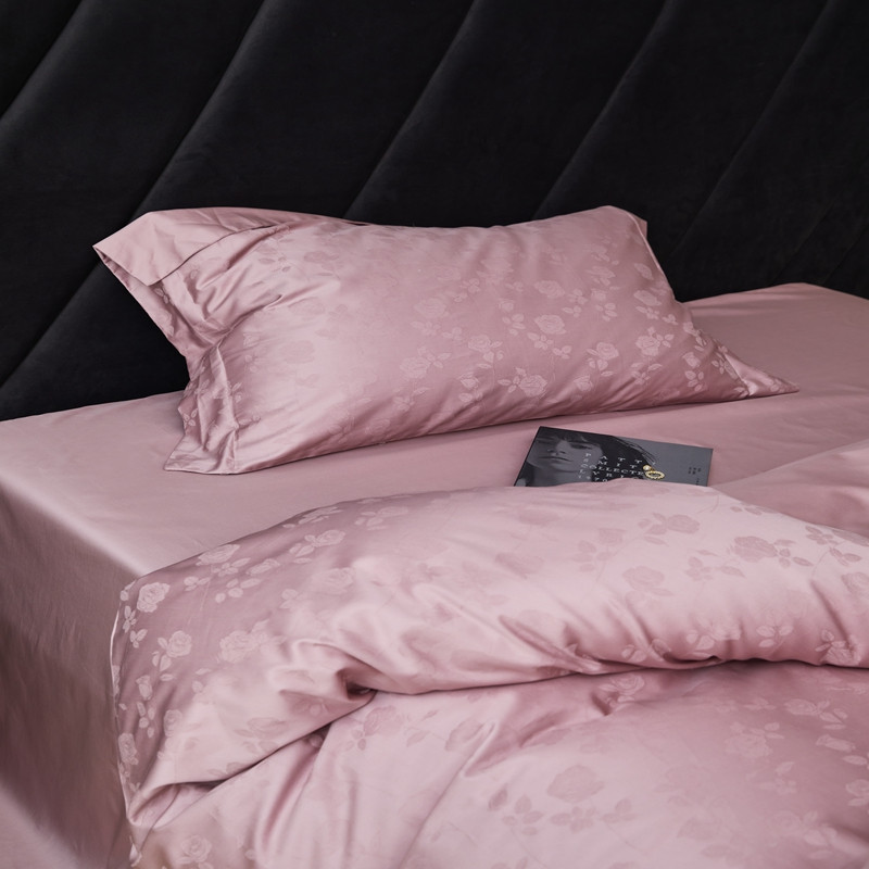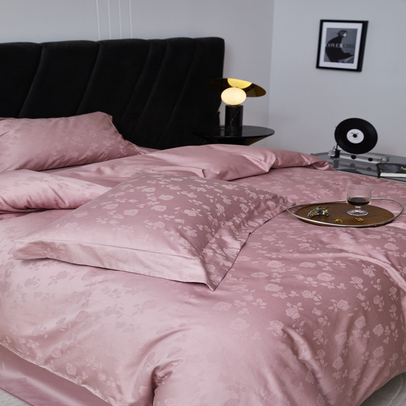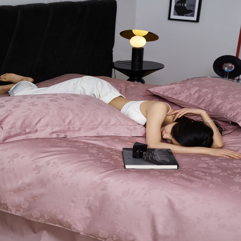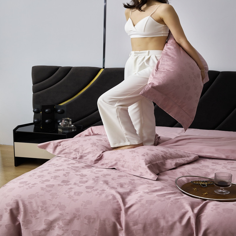 商品名称:安莱生活 2023新款 100S纯棉提花四件套 恬静花开-粉