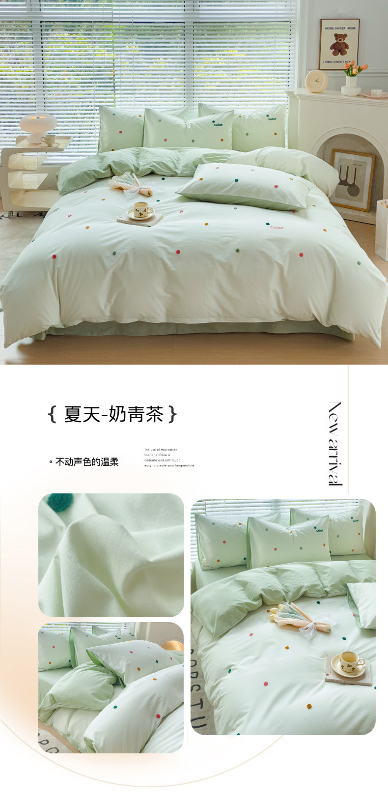 (总)丽涵家纺 2025秋冬新品混搭波点牛奶绒四件套三件套-拍摄风格二,波点-粉色,波点-蓝色,波点-奶白,波点-紫色