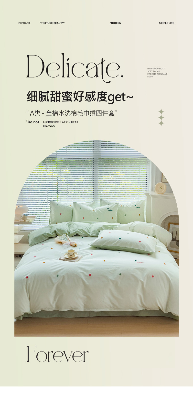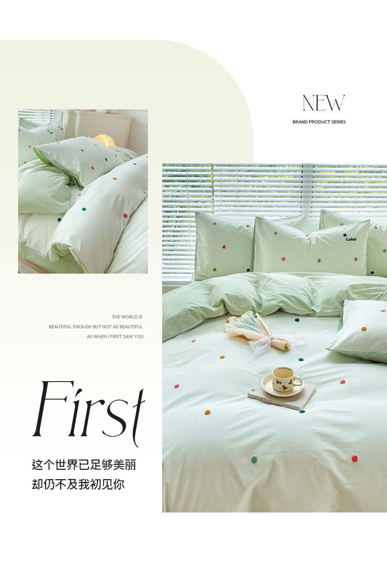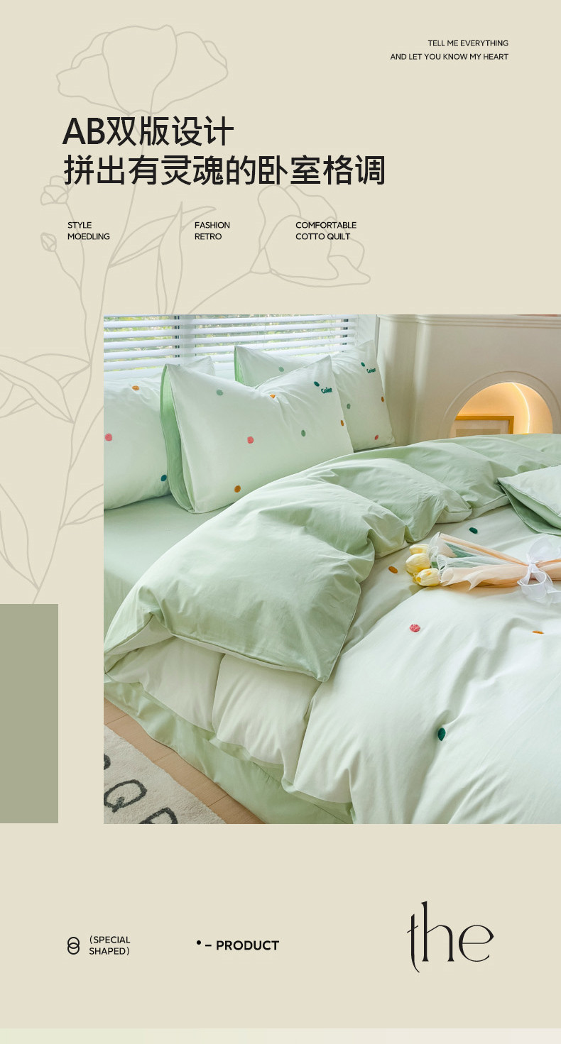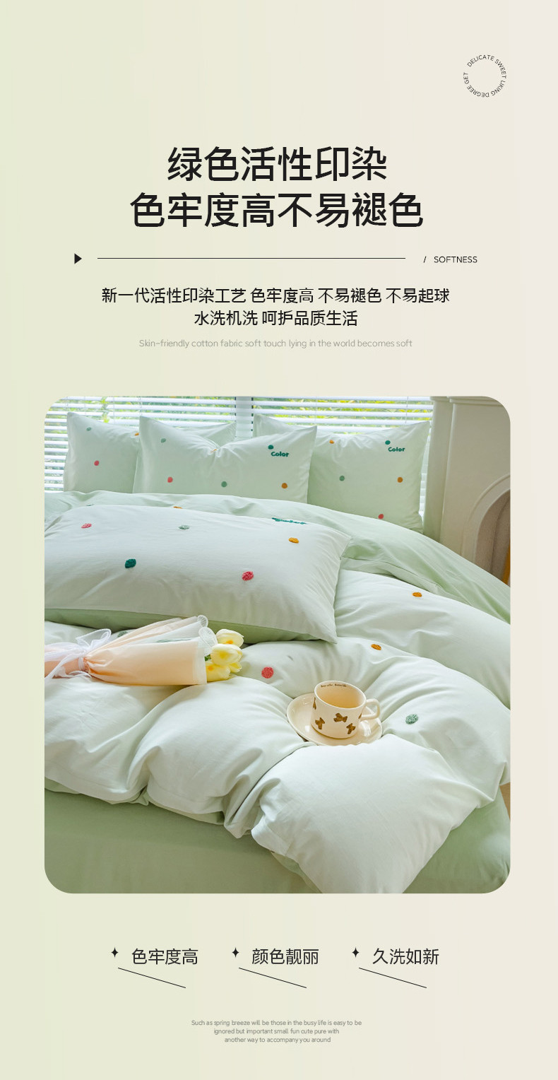 商品名称:丽涵家纺 2024新款40S全棉水洗棉绣花四件套-夏天 夏天-奶青茶
