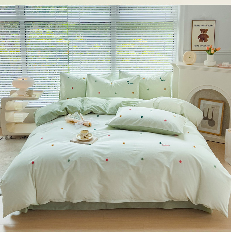 丽涵家纺 2024新款40S全棉水洗棉绣花四件套-夏天 夏天-奶青茶
