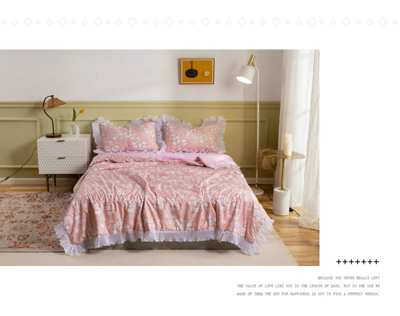 商品名称:十九色 2024新款柔赛丝雪纺花边夏被 相思粉