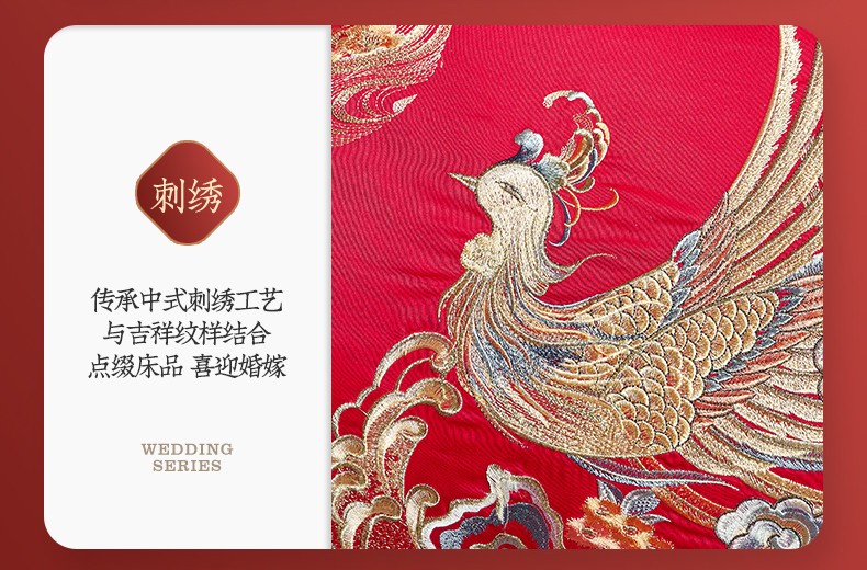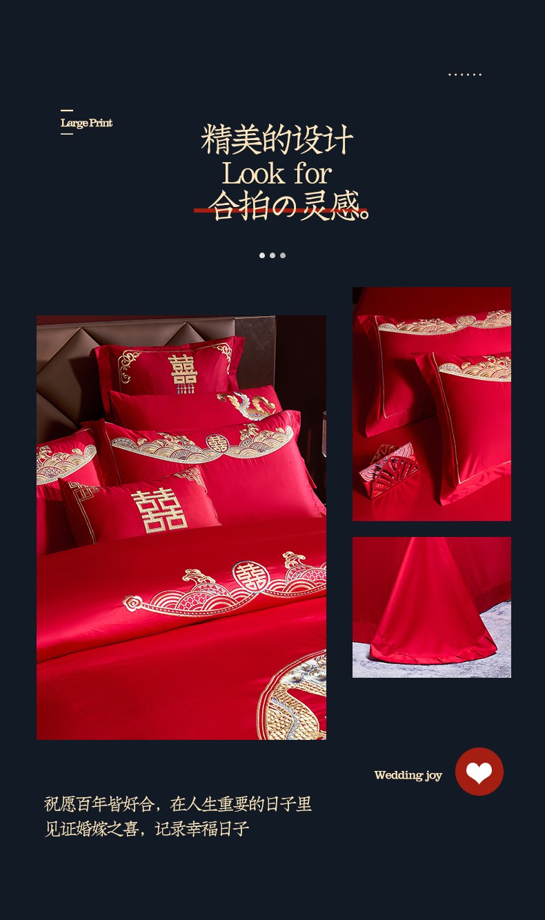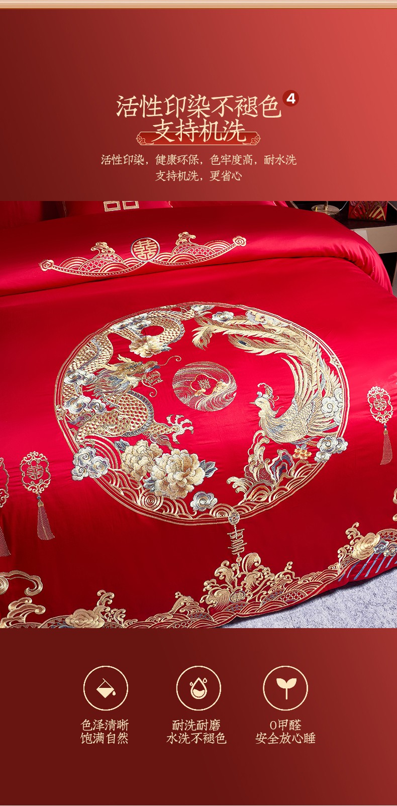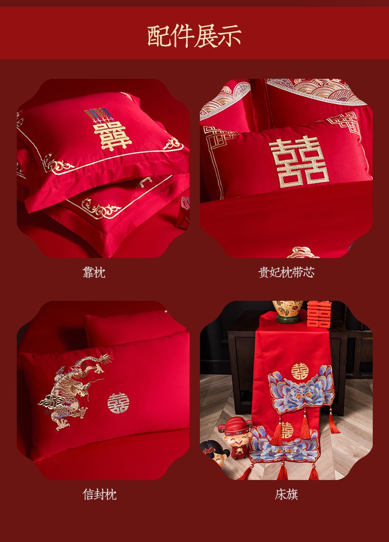 当前位置: 91家纺网 > 商品网购 > 床品套件 > 多件套 > 多件套 > 千禧 2023新款婚庆双面100支长绒棉婚庆绣花套件 龙凤至美