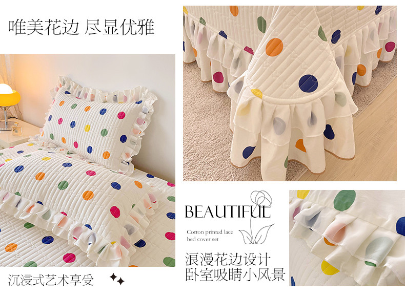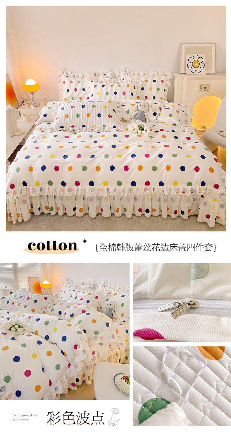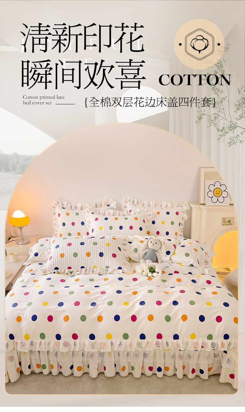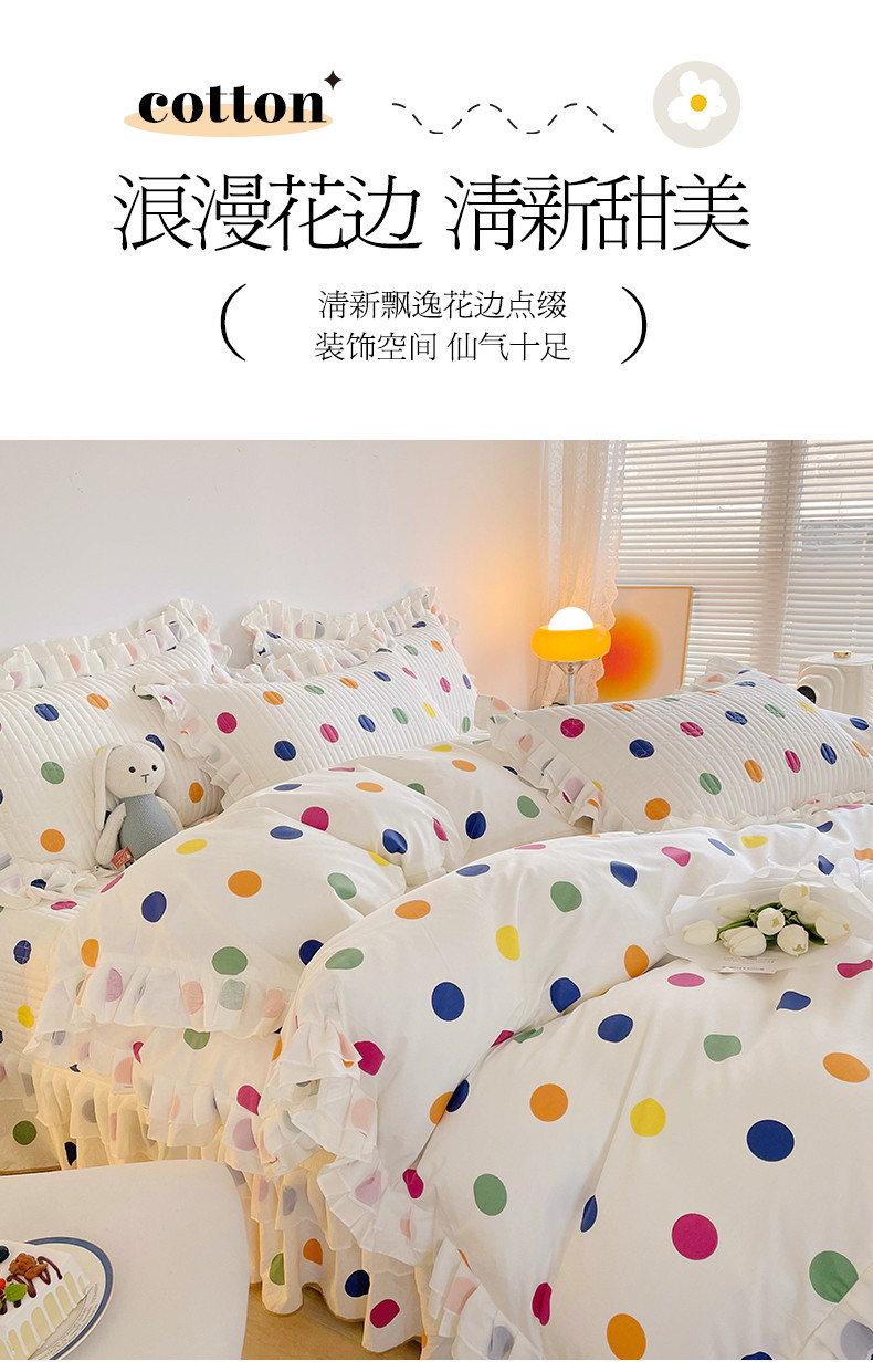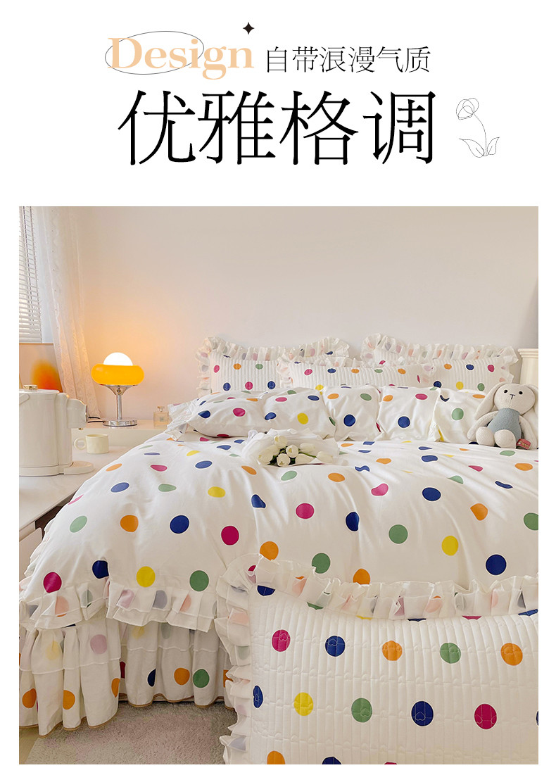 宜凡 2023新款全棉双层花边床盖四件套系列 彩色波点